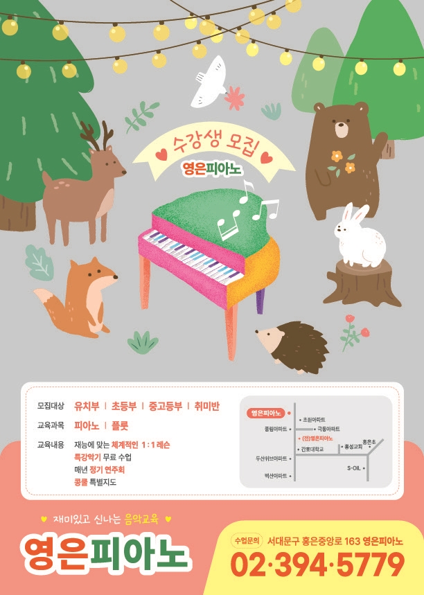 피아노 원생 약간명을 모집합니다❣️ 영피아노교습소