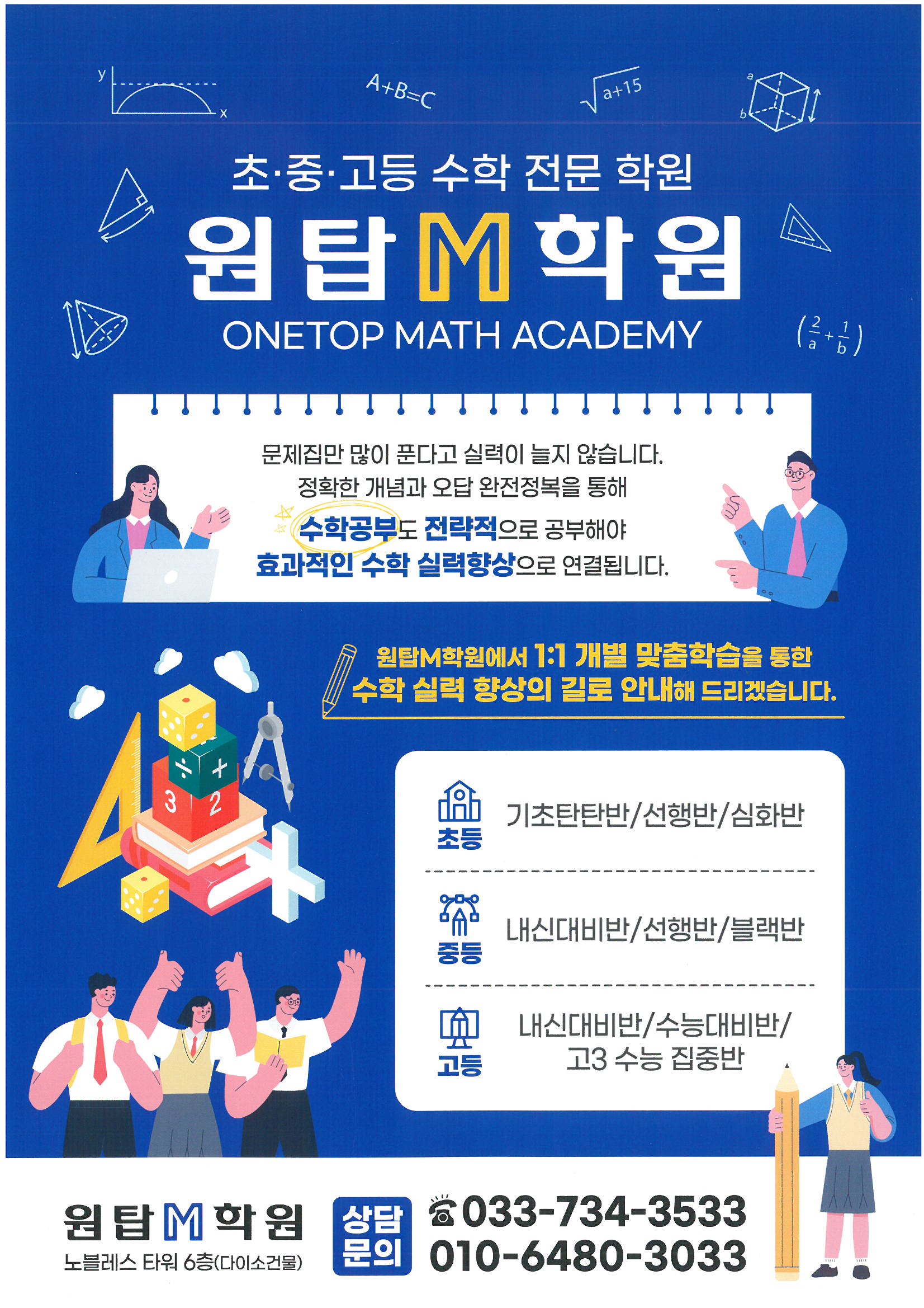 섬강중·고 상위권을 잡는 원탑 M 비결은 개념과 테스트 그리고 꼼꼼한 체크입니다. "이번... -원탑 M 학원 드림- 자세한 상담은 원탑M학원으로 문의하세요~ 수학원장 010-****-**** 학원 033-734-3533 문자 010-****-****