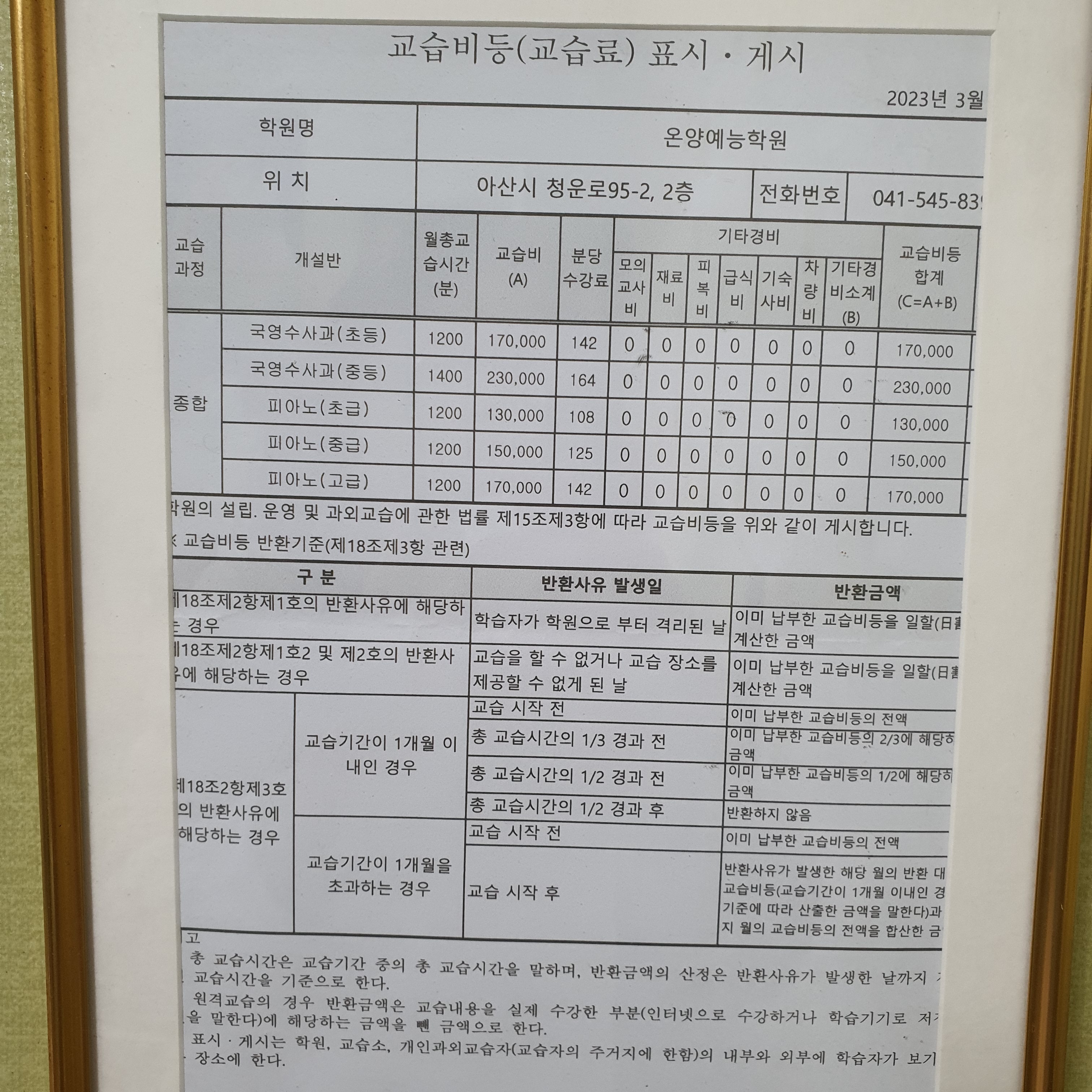 온양예능학원 상세정보