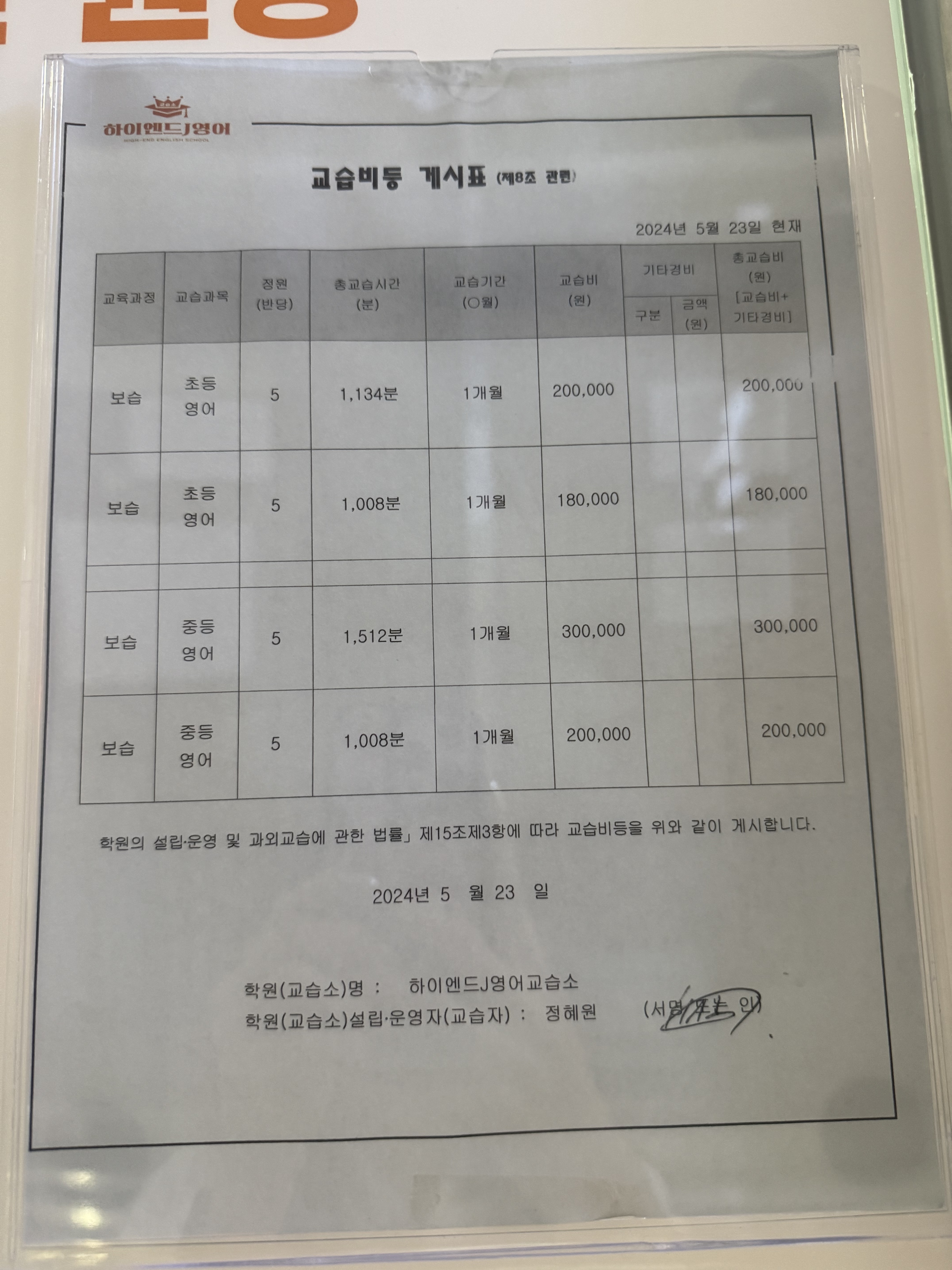 J영어교습소 상세정보