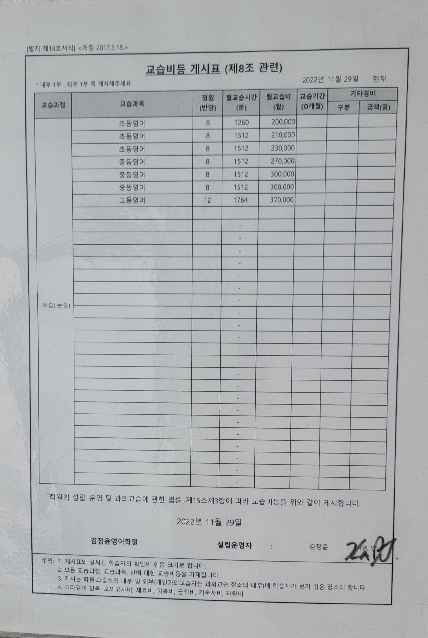 김정윤영어학원 상세정보