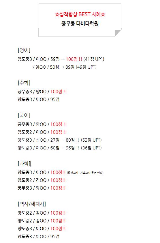 풍무동 전과목학원 (초등,중등) 다비다학원 수업 내용 설명...