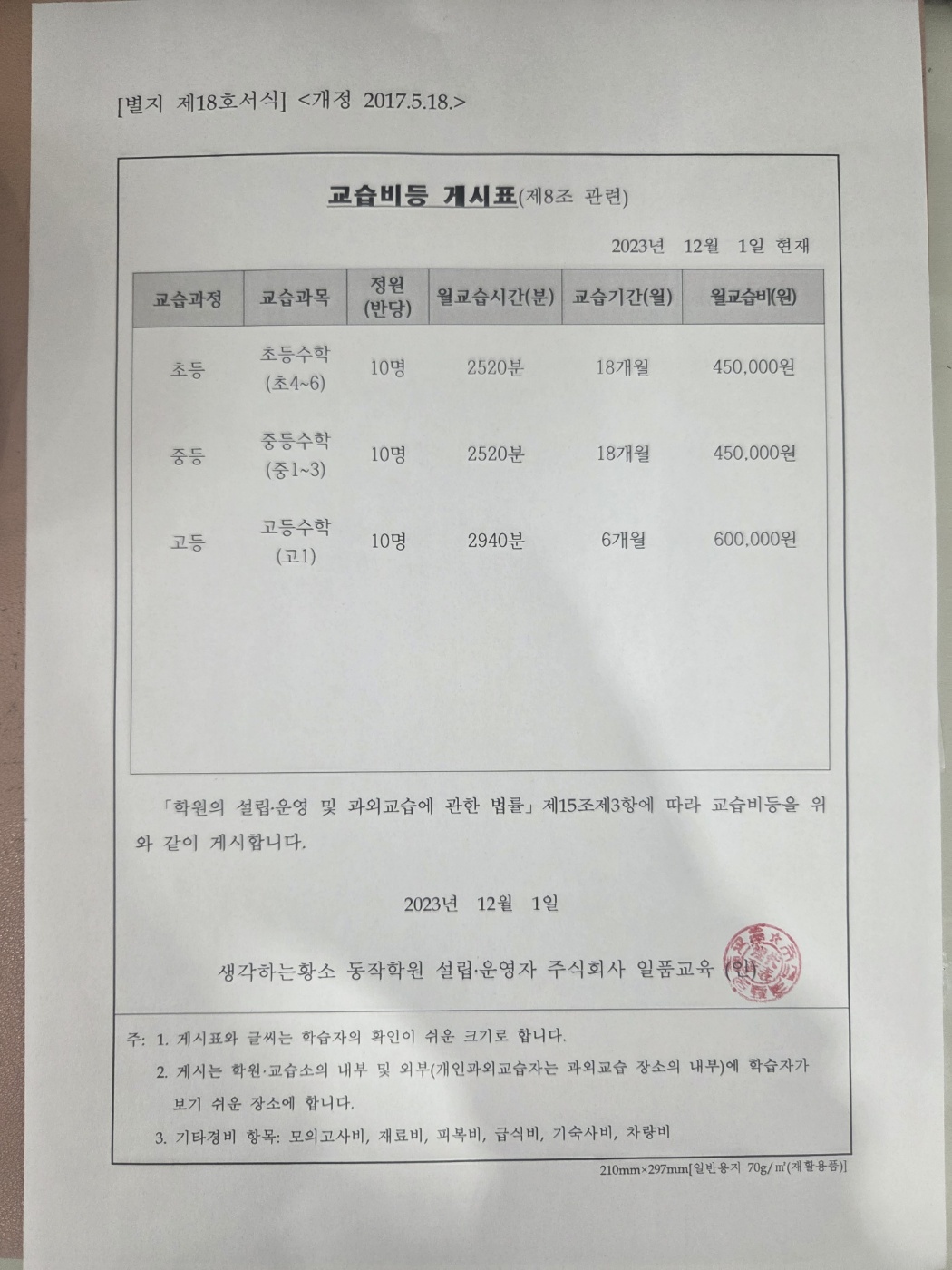 생각하는 황소 동대문 학원 정보