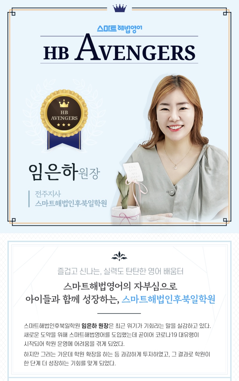 스마트해법영어 1타 원장 [HB Avengers] 2021년 세번째 영광의 주인공이신~ 전주지사 인후북일학원 임은하 원장님을 소개합니다!