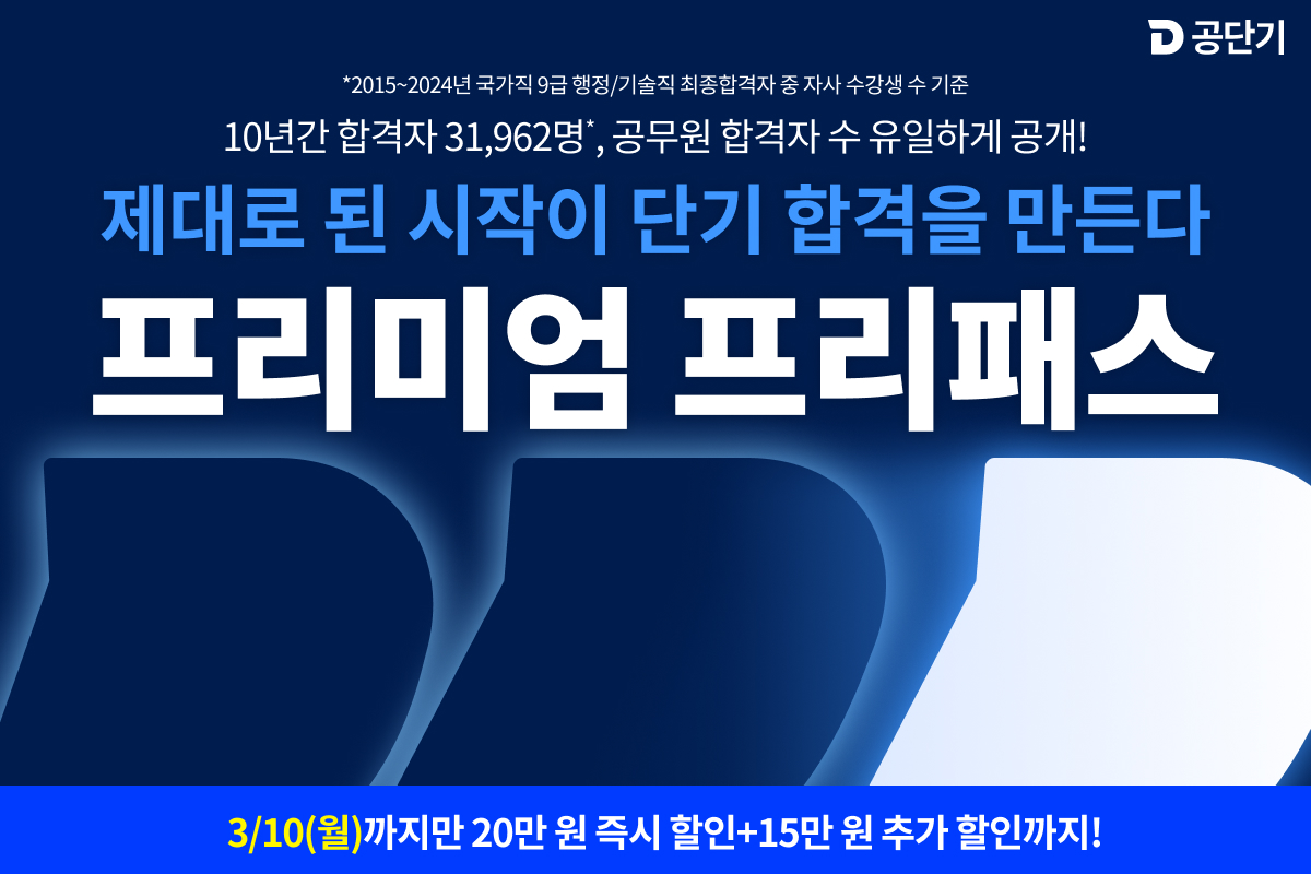 소방단기 학원실강프리패스반의 특별한 추가 BENEFIT !❣ ✅ 복습동영상 제공 ✅ 최대 175만원 할인 (11개월반) ✅ 무료 자습공간 제공 ✅ 사물함 제공 개별 단과 수강 대비 합리적인 가격으로 수험생활을...