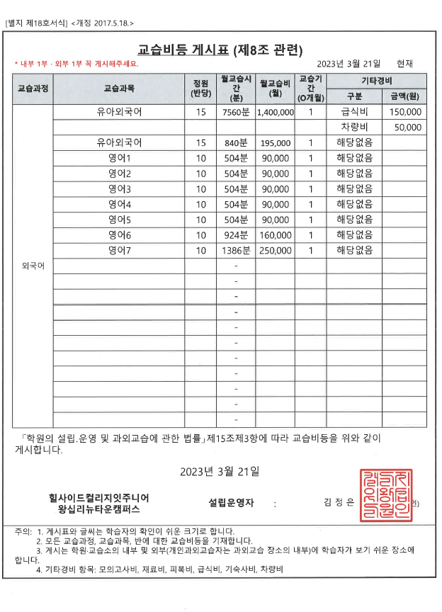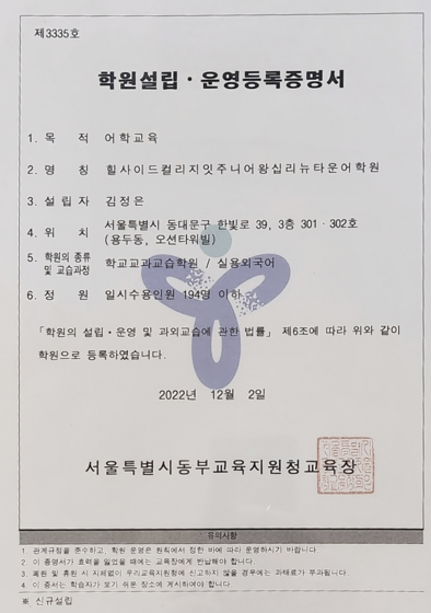 힐사이드컬리지잇주니어왕십리뉴타운어학원 상세정보
