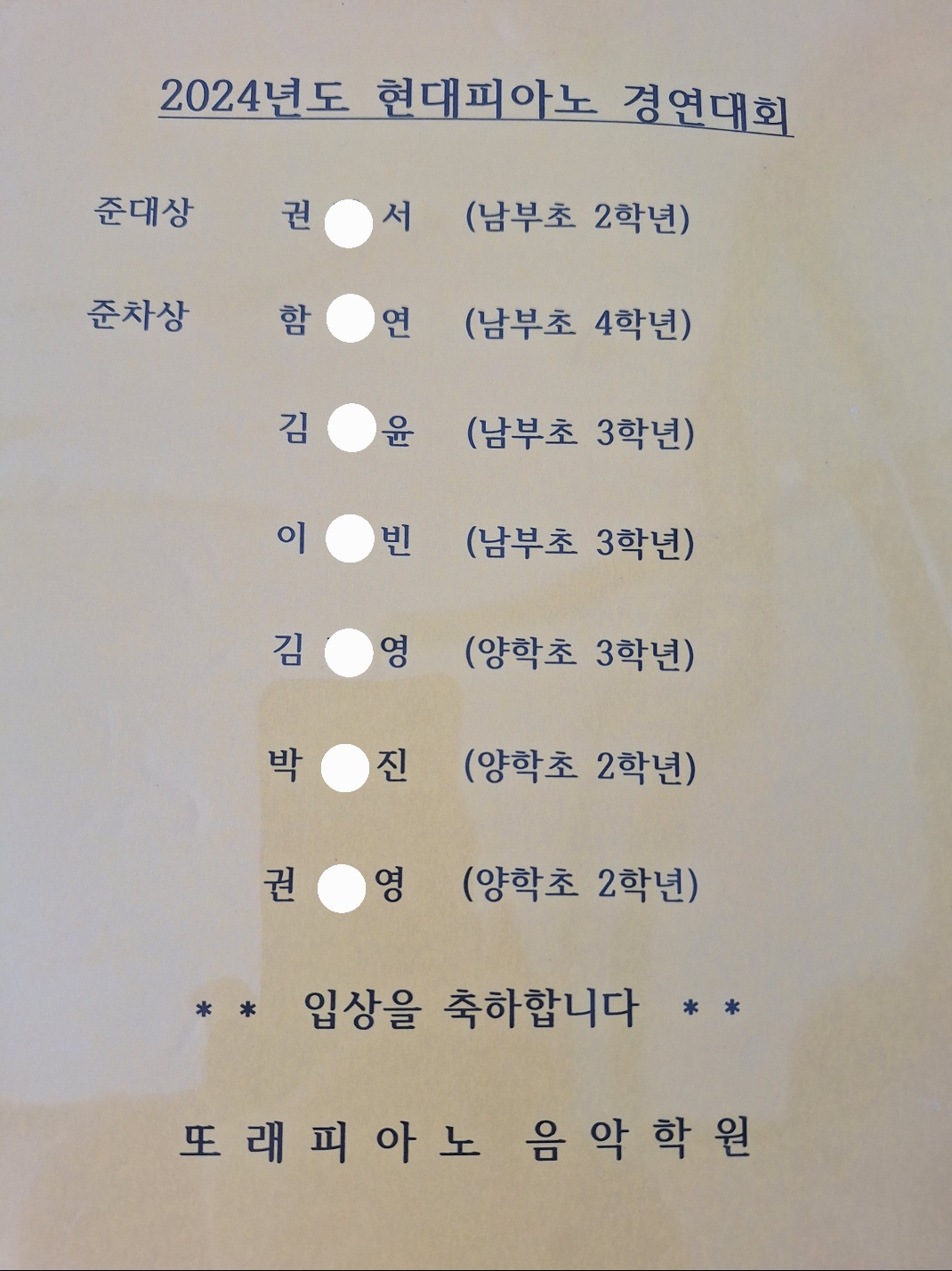 팔판마을피아노 별하음악학원 · 2024.08.19
