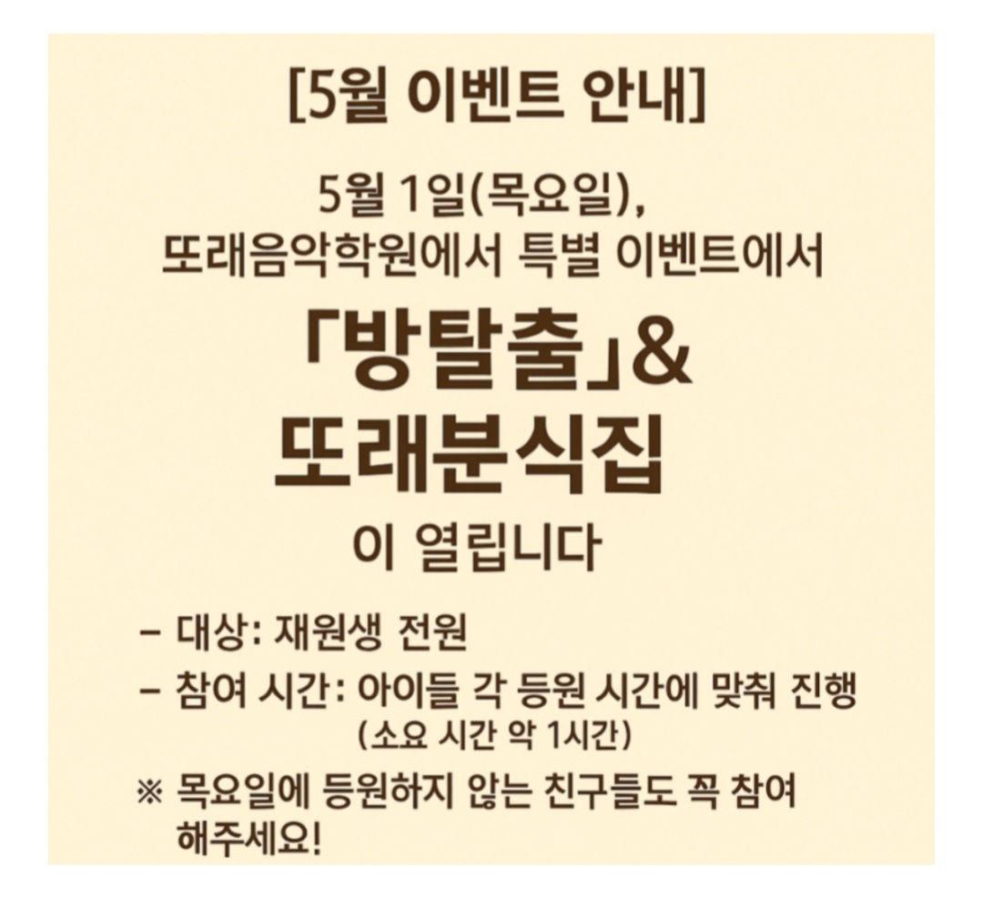 [특강안내]안양 또래 음악학원 목요일 특강안내