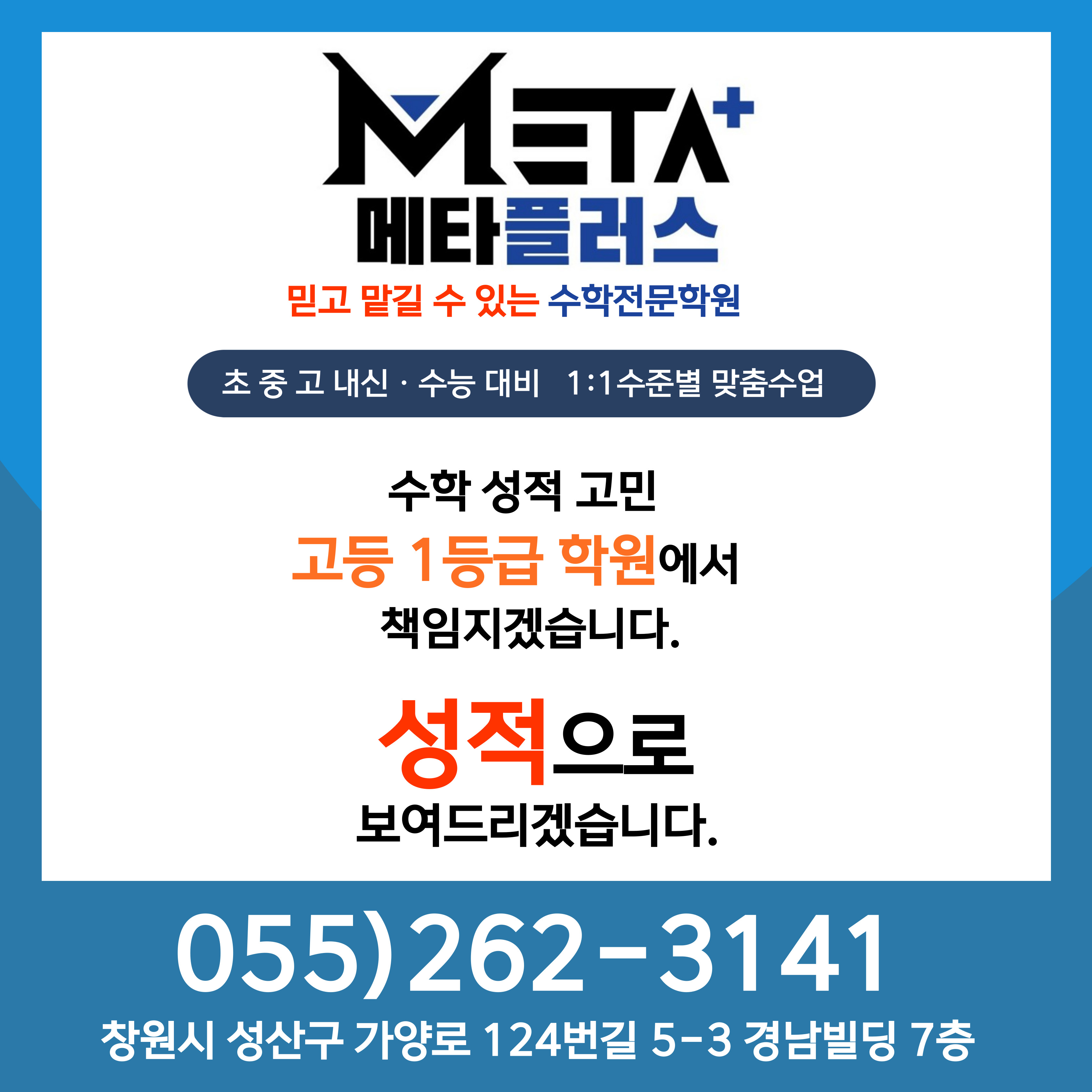 창원 대방동에 위치한 메타플러스 수학학원입니다. 안녕하세요, 학생들의 올바른 성장을 돕는 메타플러스 수학학원입니다. 수학 공부에서 '개념을 이해하는 것'만큼 중요한 것이 바로 실전에서 정답을...