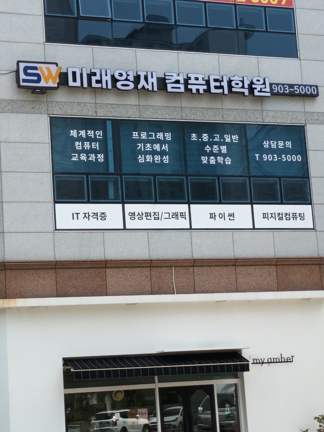미래컴퓨터 학원의 고층 유리썬팅과 LED채널간판 어떻게 하면...