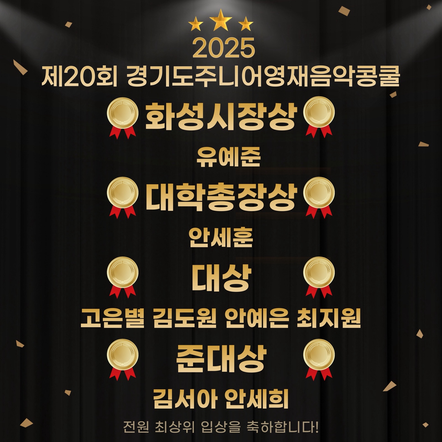 이화음악학원 음악교육 신문 콩쿨대회 전원입상을 축하합니다