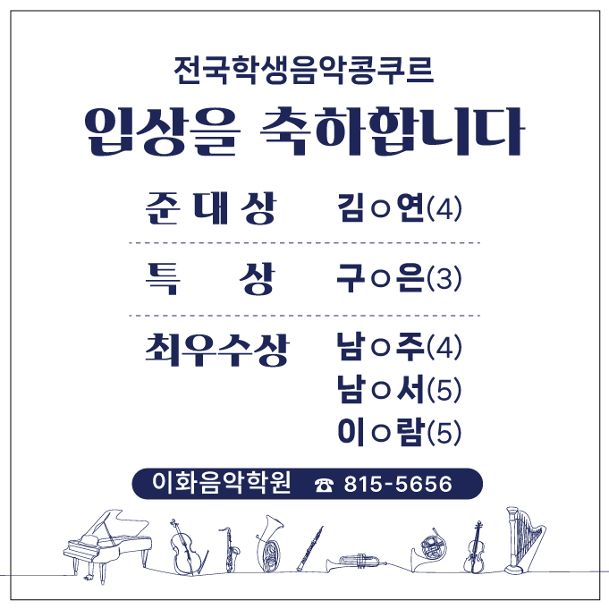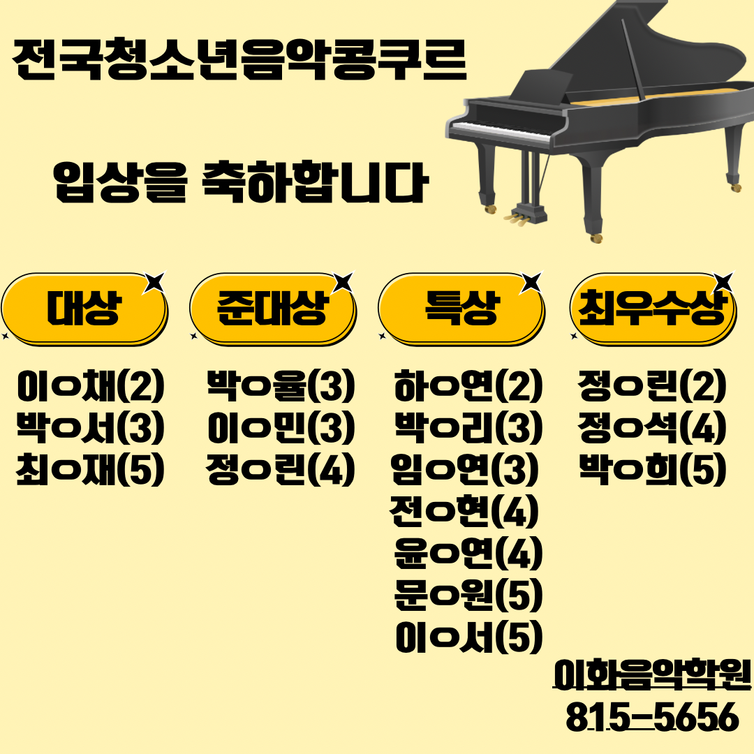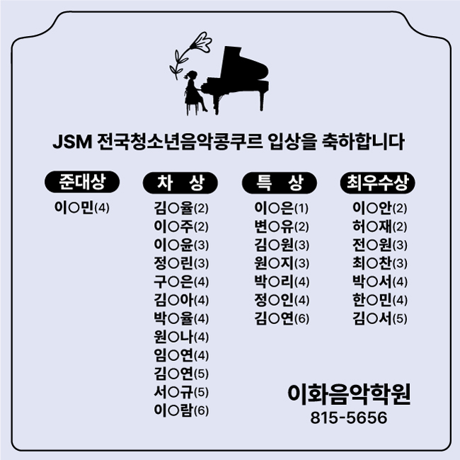 시티학생 음악콩쿠르 입상을 축하합니다 흑석이화음악학원