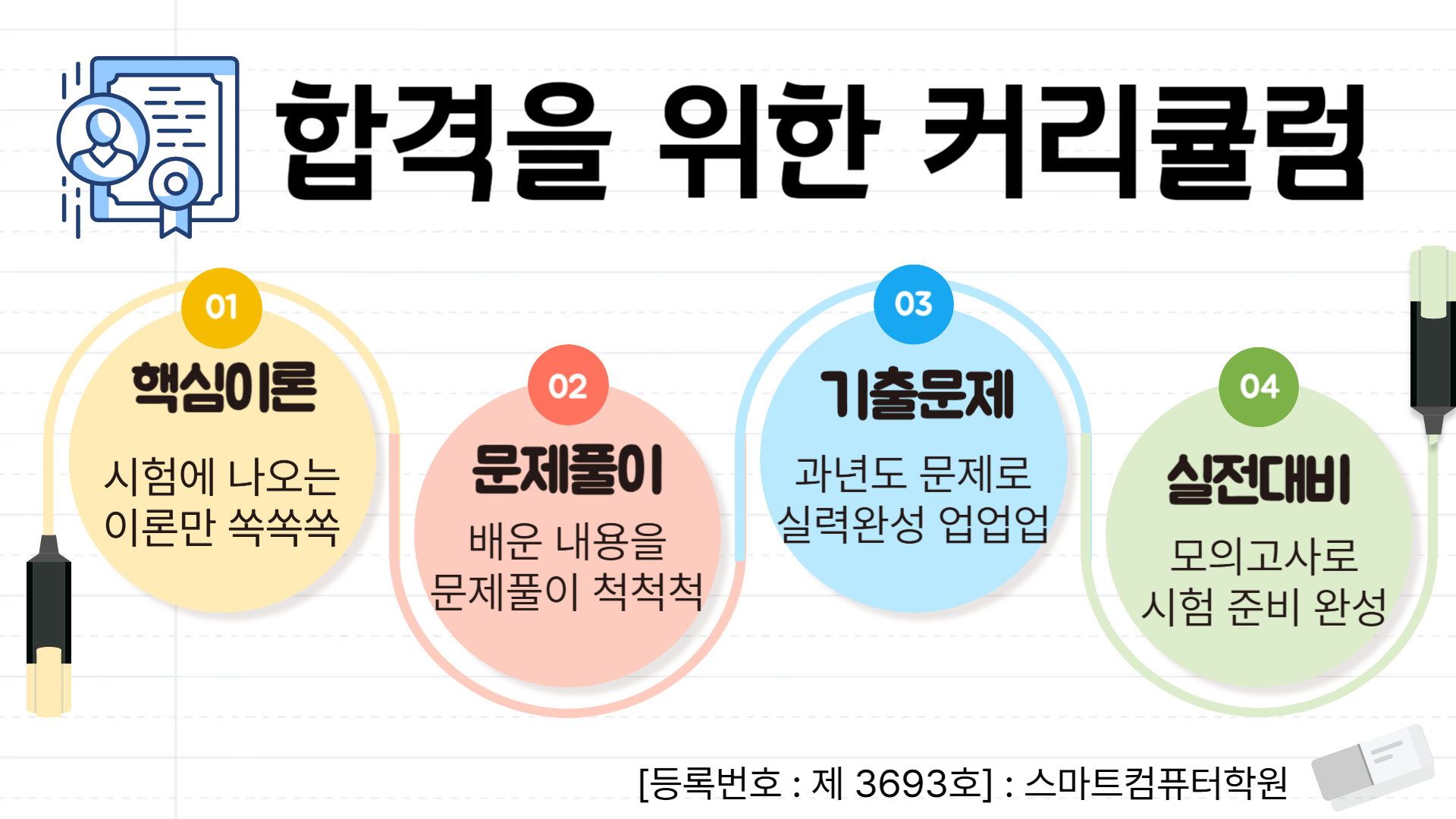 개인이 학원 올수 있는 시간에 편하게 오셔서 수업을 받으시면 되요. 2006년 부터 강의한 배태랑 선생님께서 그간의 노화우로 핵심을 쉽게 쉽게 배우실수 있어요.^^ 컴퓨터는 : 컴퓨터활용능력 2급, 1급...