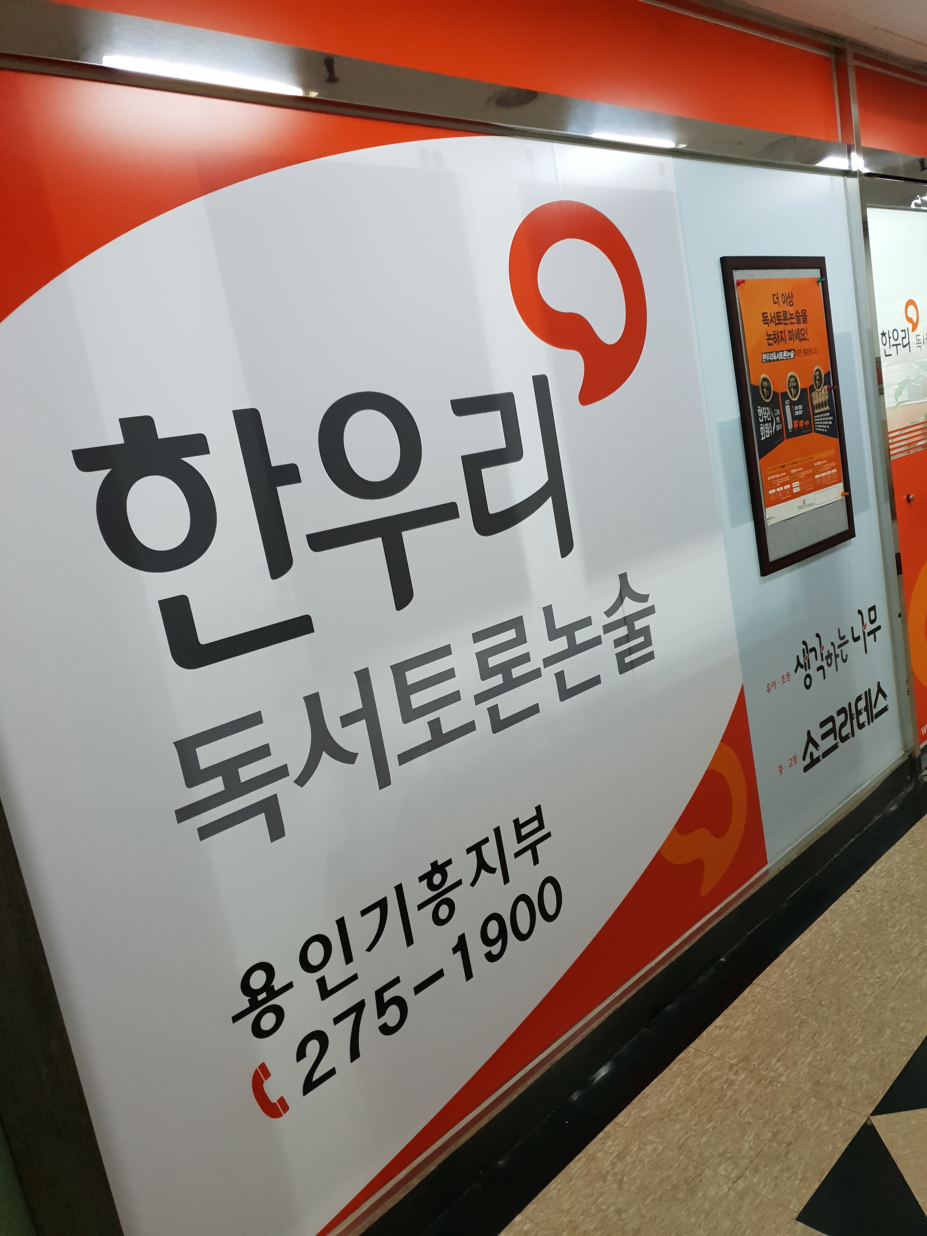시흥시 군자동 위치한 한우리 독서토론논술학원 LED 채널, 유리썬팅, 돌출간판 제작 및 시공사례 한우리 독서토론논술 독서교실 학원 간판 제작 및 유리썬팅 시공 메인 정면 모습입니다. 시흥시에 위치한 한우리...