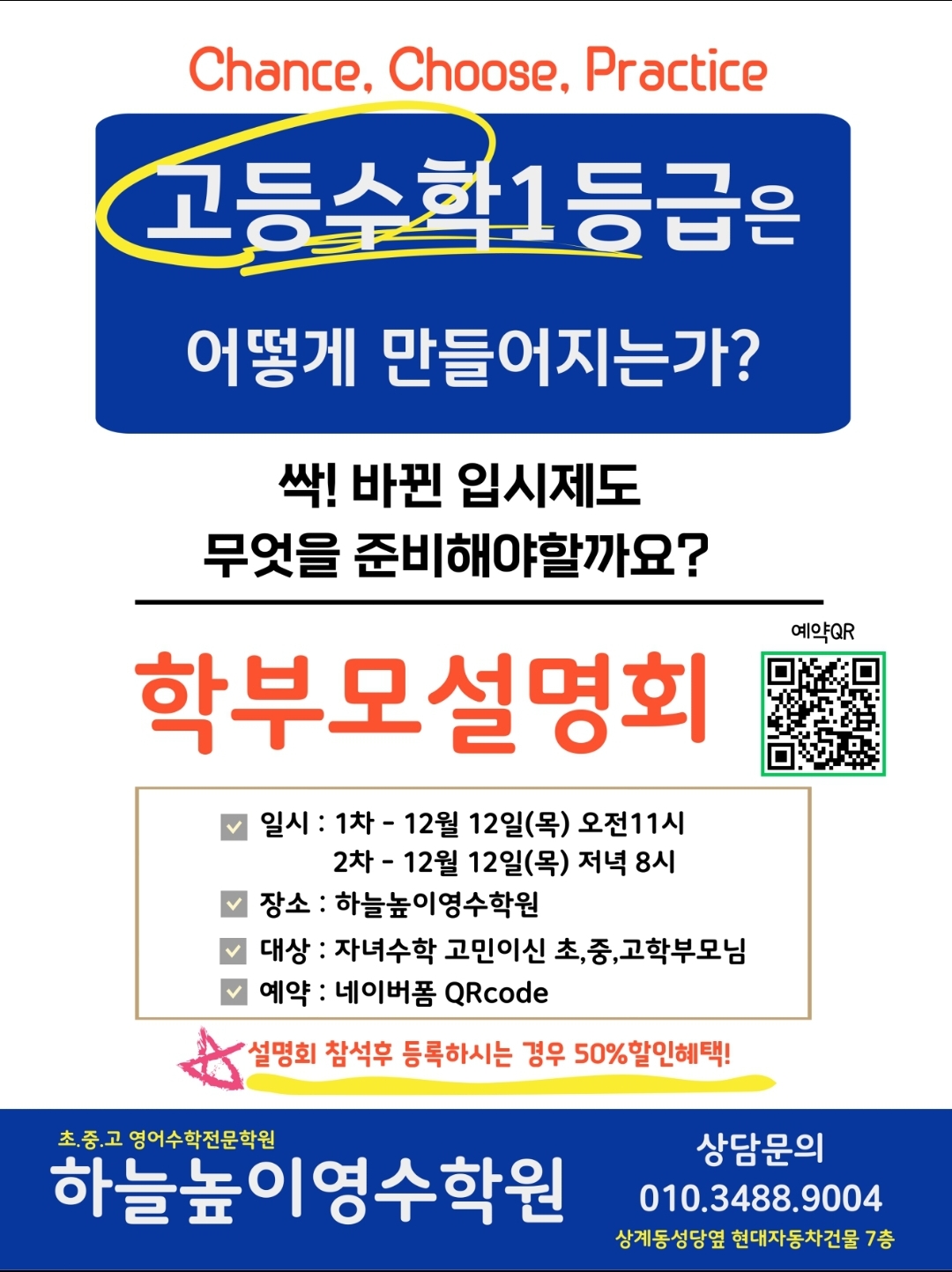 이름 : 삼성영어셀레나 고산하늘1호교습소 도로명 주소 : 태성3로 11 고산오포센트럴포레 상가 3동 105호 ● 영업시간 - 월 13:00 ~ 20:00 - 화 13:00 ~ 20:00 - 수 13:00 ~ 20:00 - 목 13:00 ~ 20:00 - 금 13:00 ~ 20:00 옵션사항...