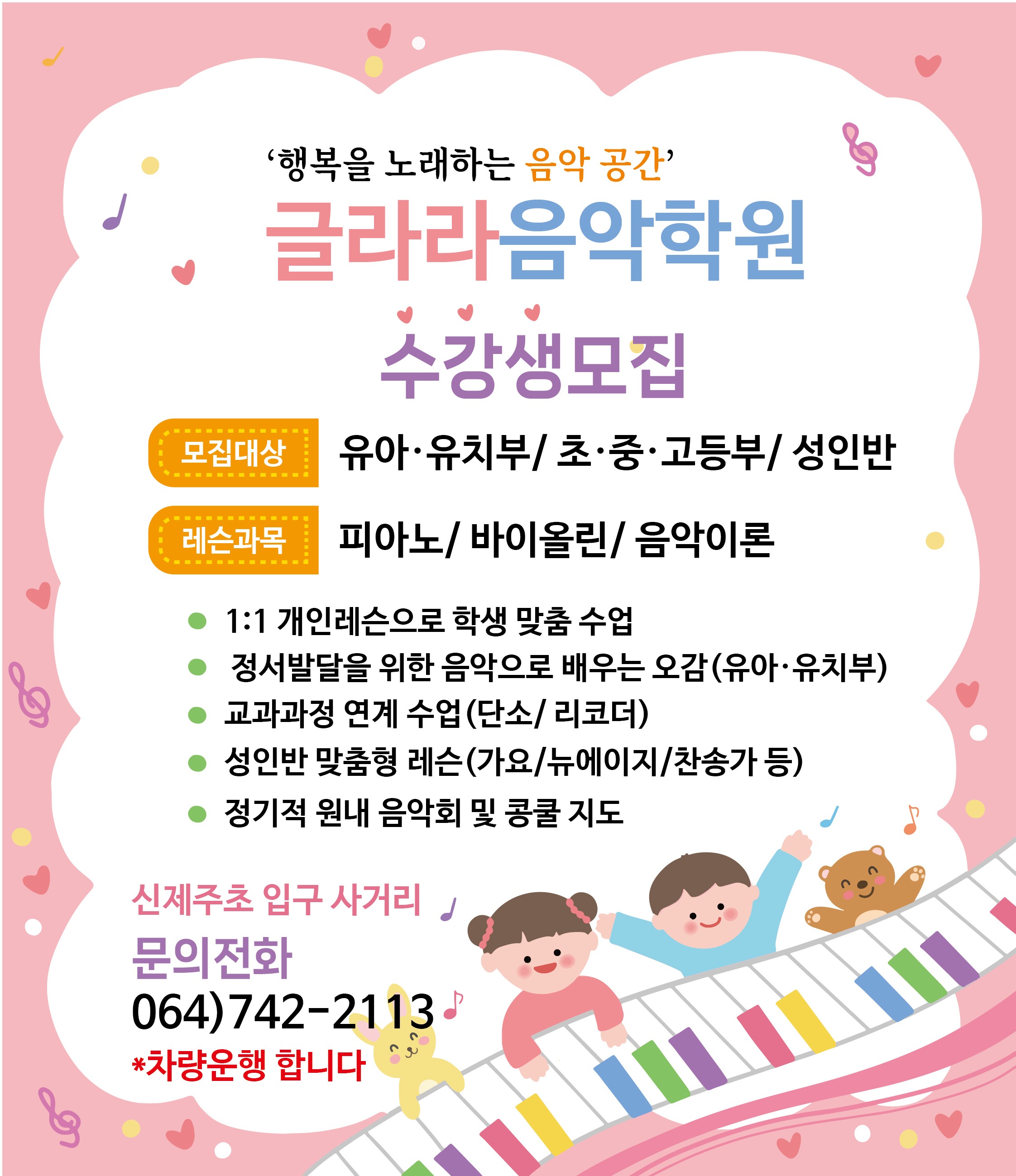 신제주초 어린이피아노 글라라 음악학원