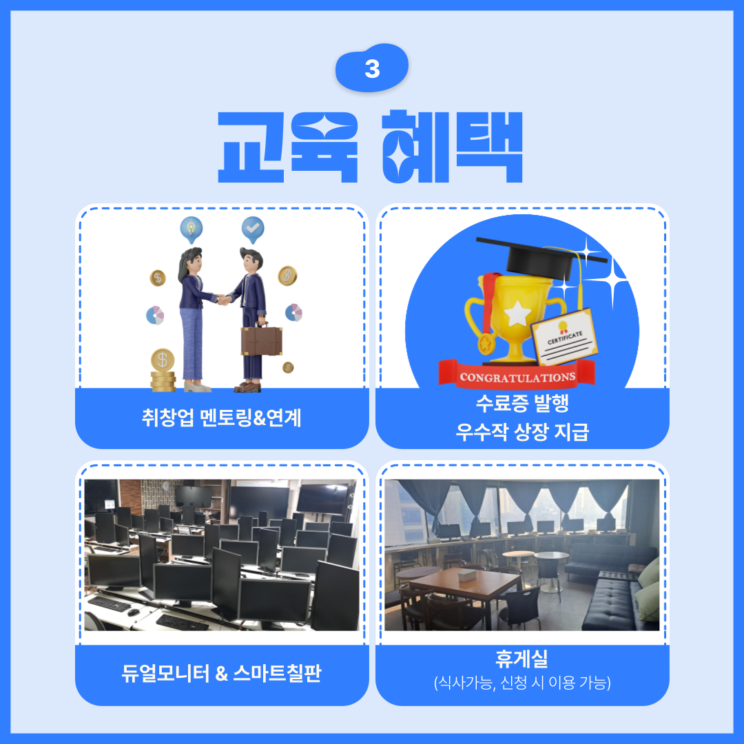서울IT학원 비전공자 개발자 내일배움카드 국비지원 취업 과정 안녕하세요. 대기업 IT회사 출신 복영일... ai기반 영상편집 과정 정보보안 화이트해커 과정 클라우드 엔지니어 과정 그 외 다양한 맞춤형 수업...