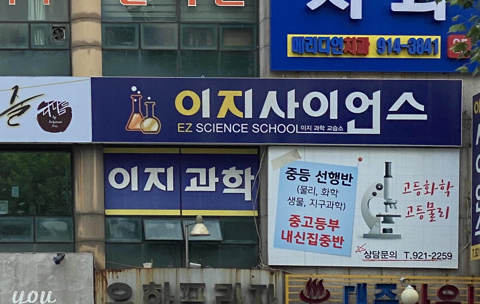 엘 과학교습소, 탐탐수 과학, 더플랜, 택, 프리즘, 다원교육 (총 12개) *기타: 재령사회, 윤현 사회... 중국어, 이지학원(중고등 영어/수학), 전영배 국어 등이 있고요. 바로 뒷건물 [우성에펠타워]에는 한얼 국어...