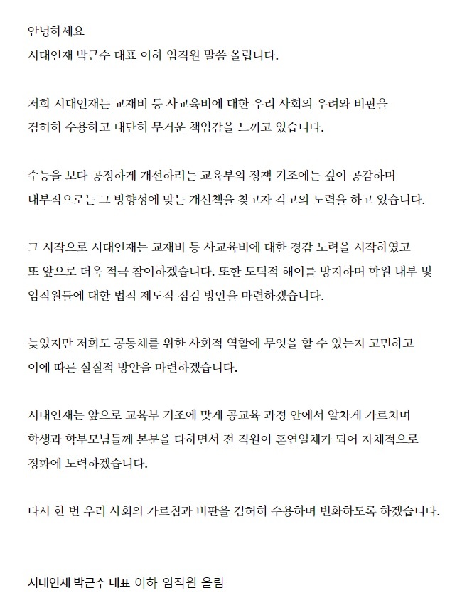 대치동재수학원 시대인재 강사진이 출강