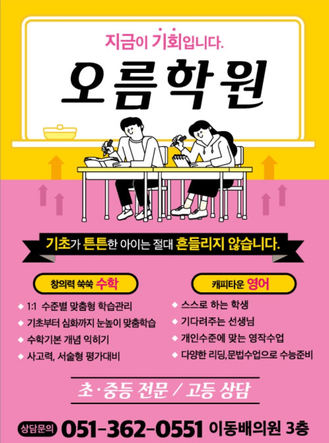 MK The 오름학원 입니다. 저희는 학생 여러분의 성공적인 학습 관리를 가장 중요하게 여기고 있는데요.... 여러분이 학업에서 더욱 빛날 수 있도록, 저희 학원이 함께해 드리고 있어요. 여기서 더 나아가 학생들이...