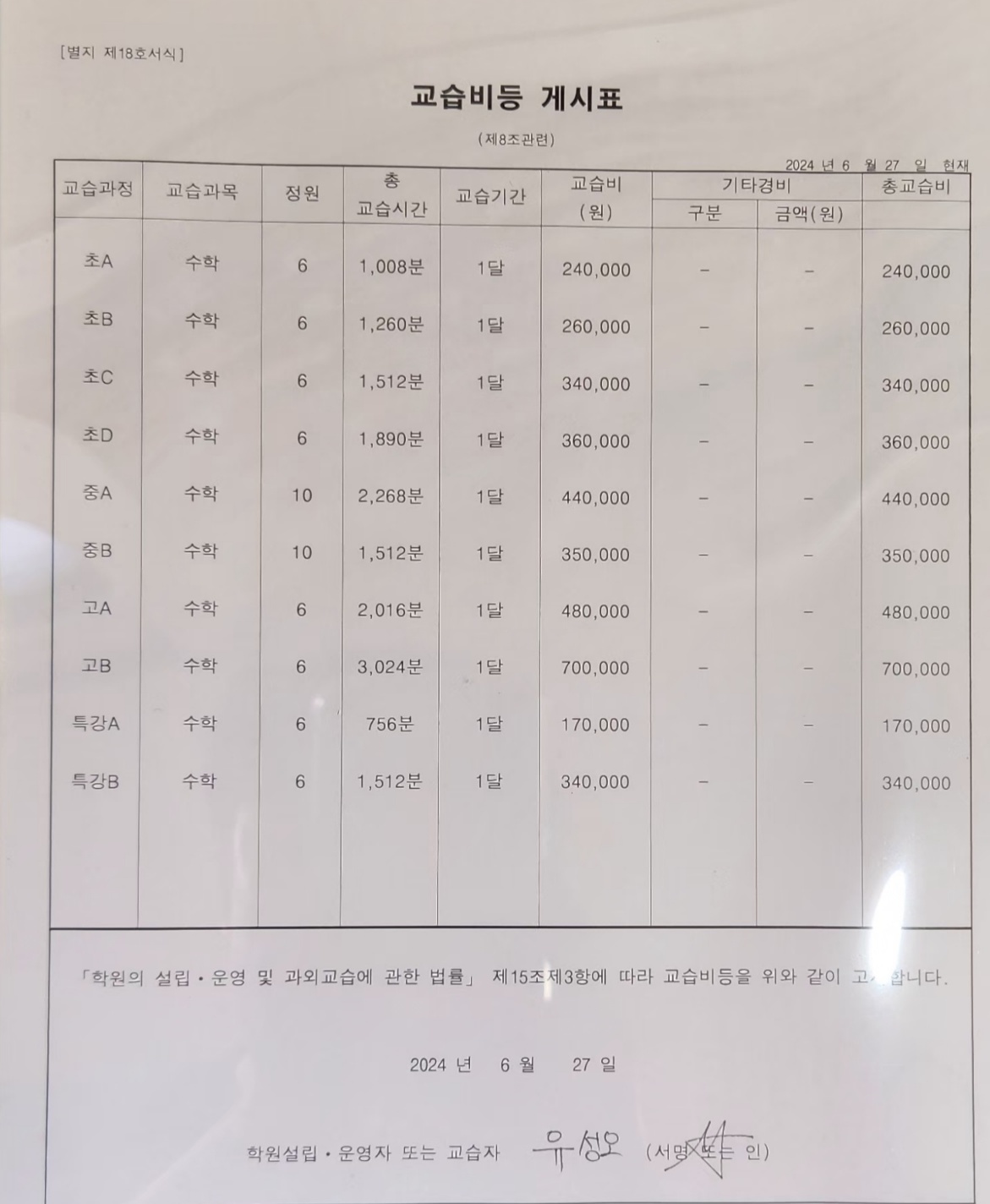 별이빛나는수학학원 상세정보