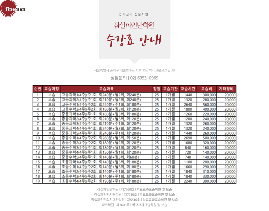 잠실파인만서관학원 상세정보