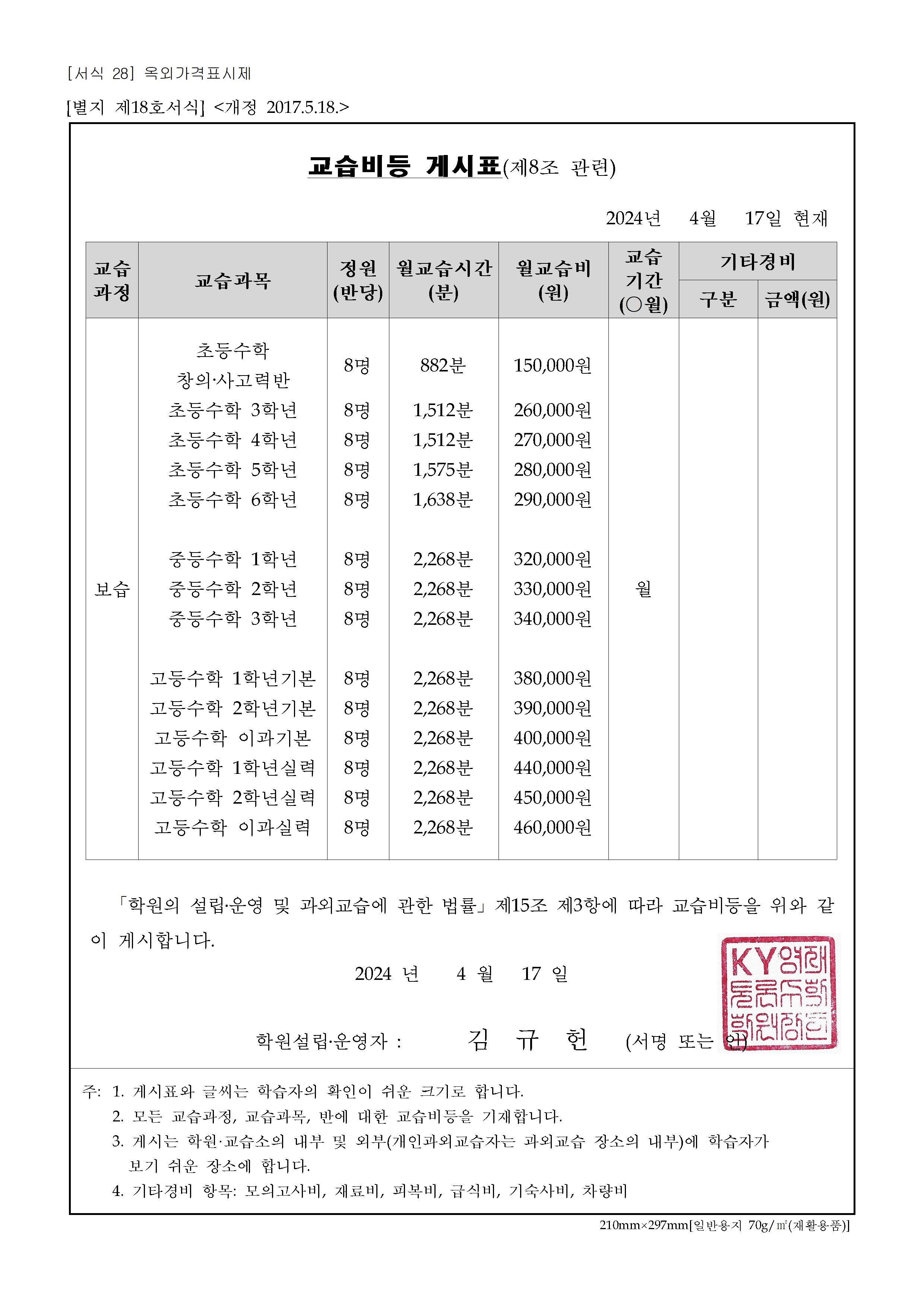 9월 양천구 수학 학원비 TOP 100