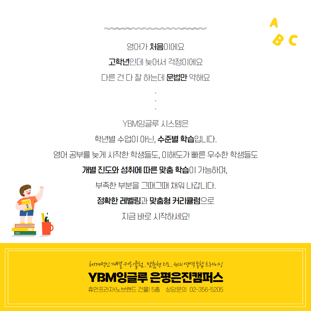 신도초초등영어 와이비엠잉글루은평은진제1캠퍼스학원입니다. 2025년이 저물어가는 시기가 되면서 학부모님들은 아이들의 교육을 위해 다양한 학원들을 알아보고 고민을 하고 계십니다. 특히 내년에 초등...