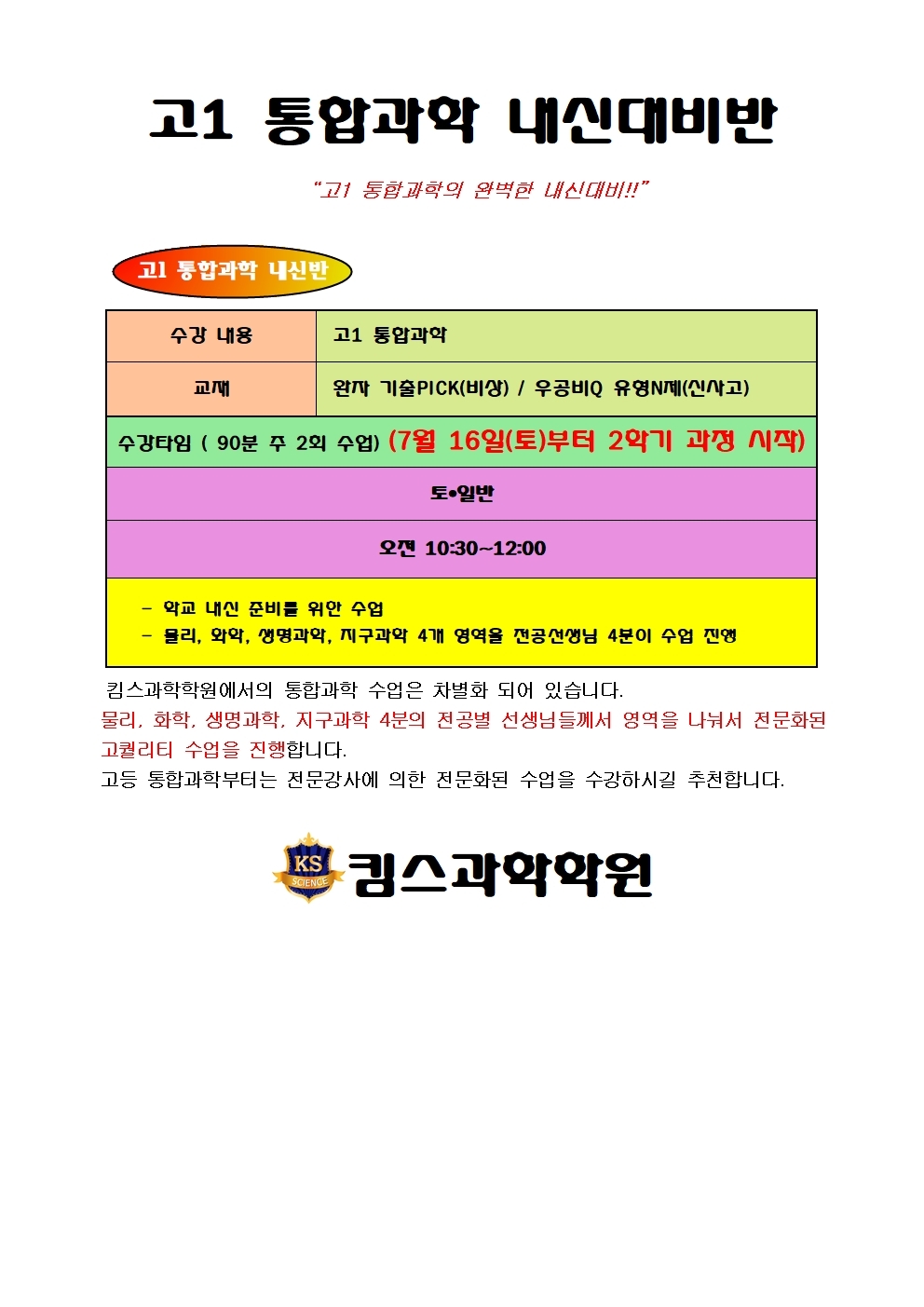 윤도영통합과학시스템학원 2009년생을 위한 2028학년도...