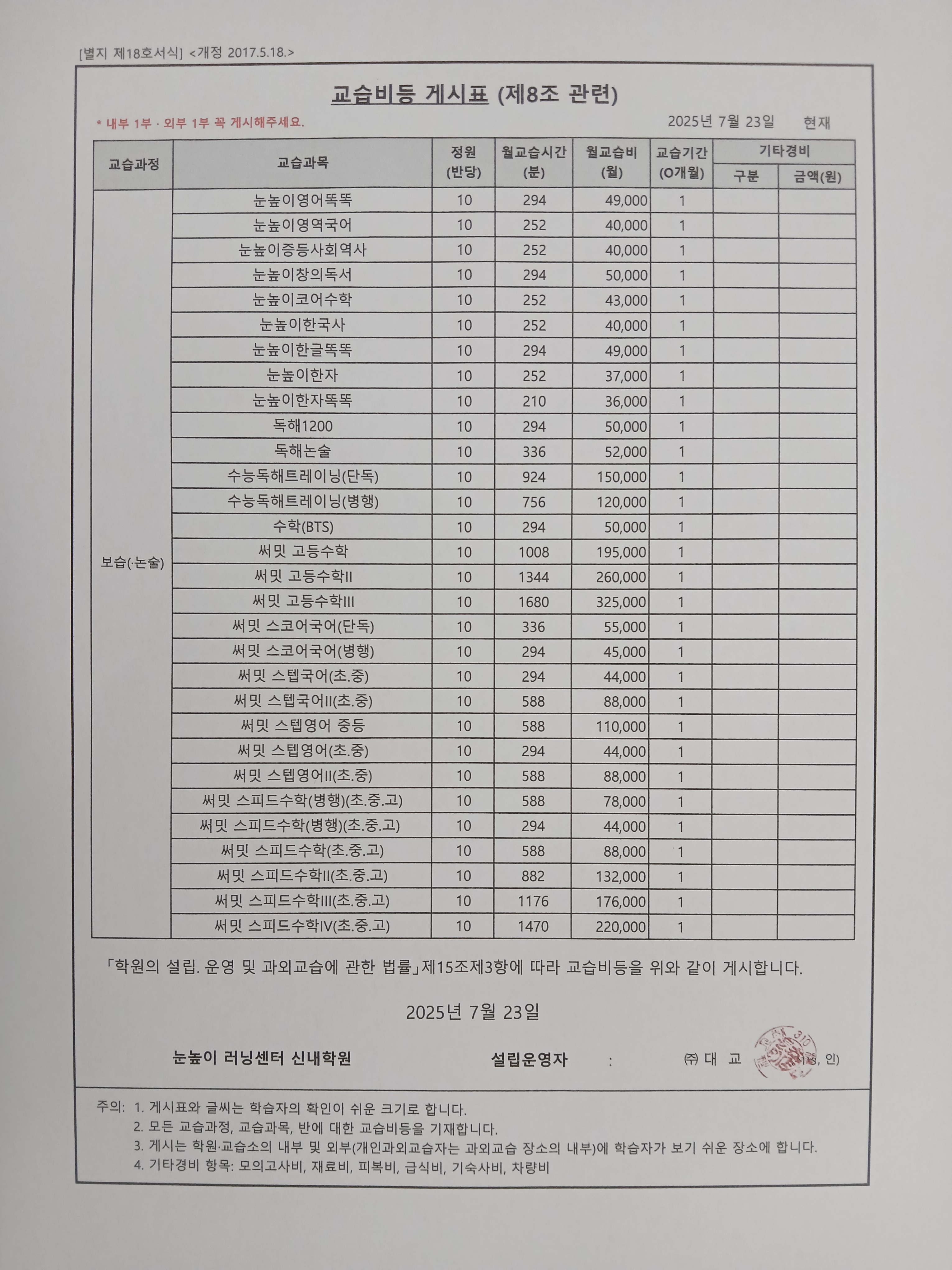눈높이러닝센터 신내학원 (등록번호:제2596호)