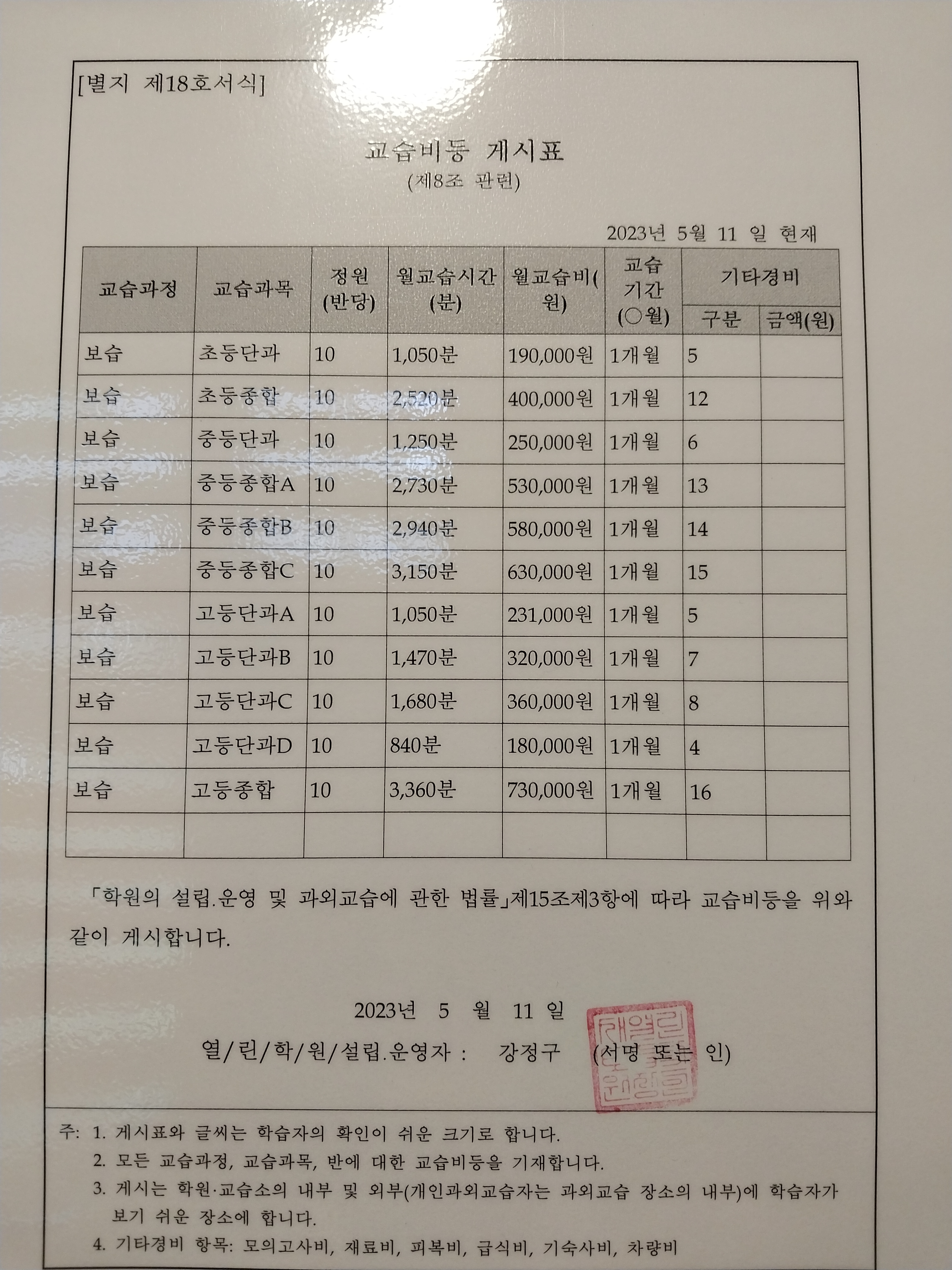 일원열린학원 상세정보