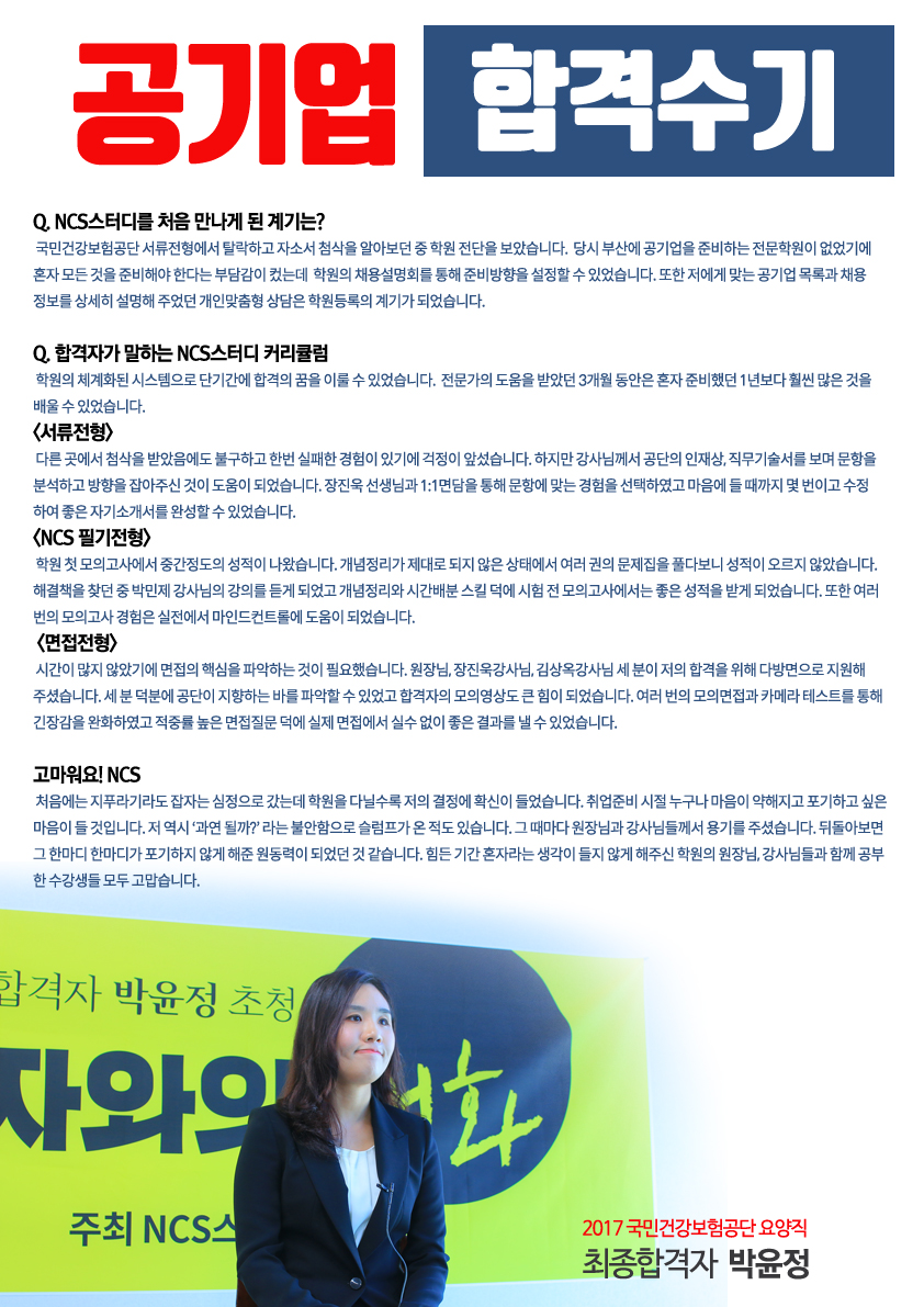공기업NCS필기학원 안에서는 합격을 보장하는특성화고의 취업성공반을 운영한다고 합니다 엔씨에스... 인강, 스터디 하곤 했는데 학원에서 직접 최신 트렌드도 알려주시고 문제도 찝어주시구 설명해주시면...