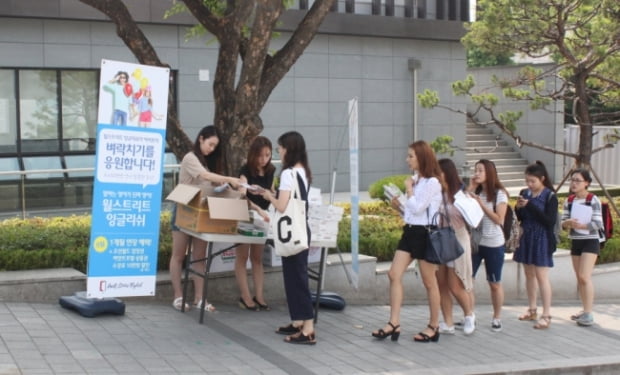 박**어학원과 월스트리트 잉글리쉬 두 곳 이었습니닷- 부산에서는 유명한 어학원으로 파**가... 학원에 딱 들어서면 보이는 곳! 7월 인스타그램 이벤트가 진행중이에요. 매월 이벤트를 게시하는 공간이라고...