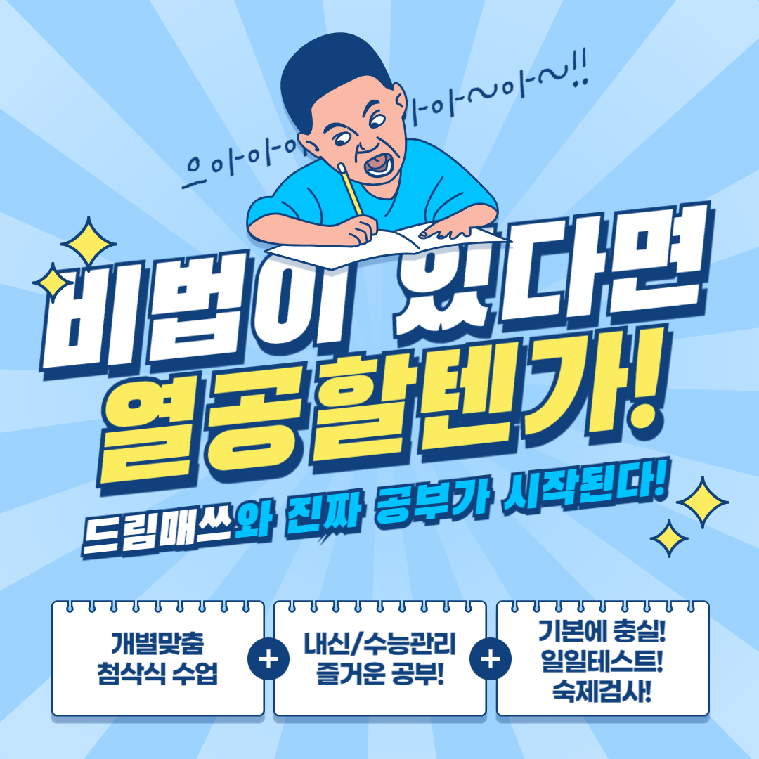 안녕하세요, 드림수학학원입니다✨ 오늘은 수학학습법에 대해 한번 이야기를 나누어 보려고 합니다.... 아이들이 수학을 통해 즐거움·몰입·성장을 경험할 수 있도록 꾸준히 고민해왔고, 그 과정에서 두매쓰...