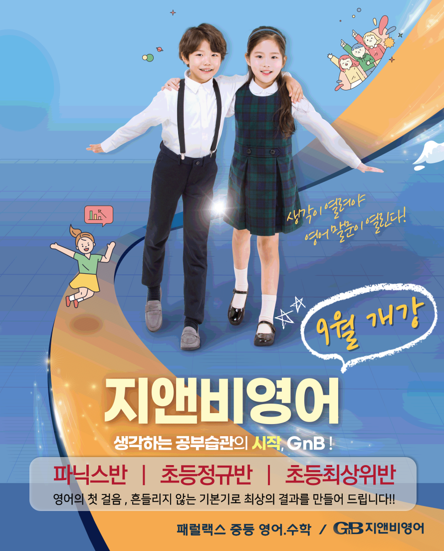 ✔ 지앤비 학원은 초등만 잘하는 학원이 아닙니다 ‘초등영어 전문학원’이라는 말로는 지앤비를 설명할 수 없습니다. 지앤비는 초등 → 중등 → 고등까지 이어지는 커리큘럼 체계를 갖춘 경기북부 대표...