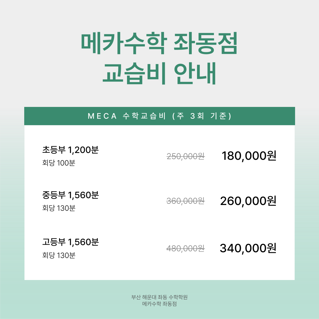 해운대 수학학원 메카수학 좌동점 9월 정식 오픈!
