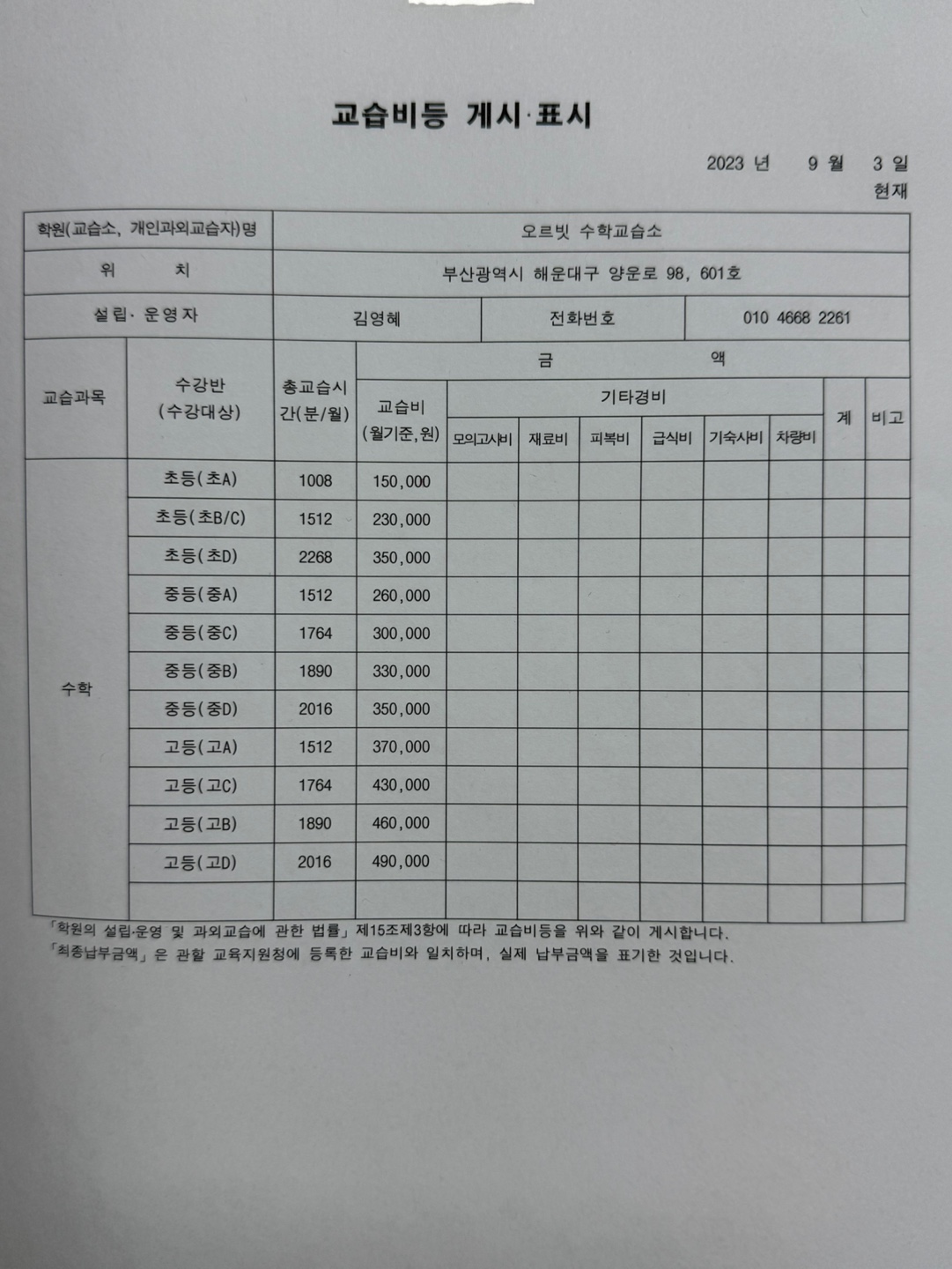 오르빗수학교습소 상세정보