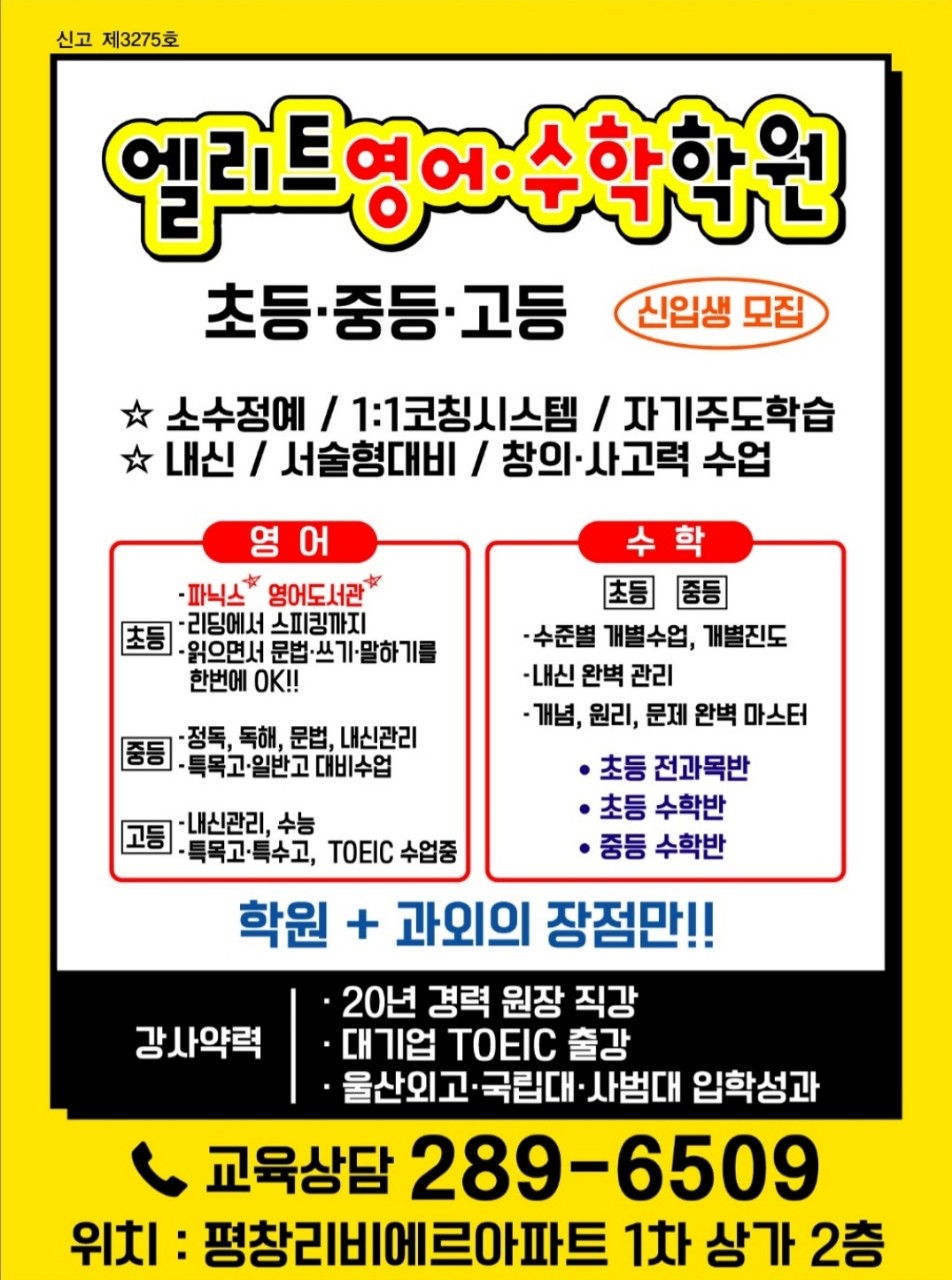 학원/ 창원 대방동 과외/대방동 수학] 엘리트 수학 교습소 OPEN
