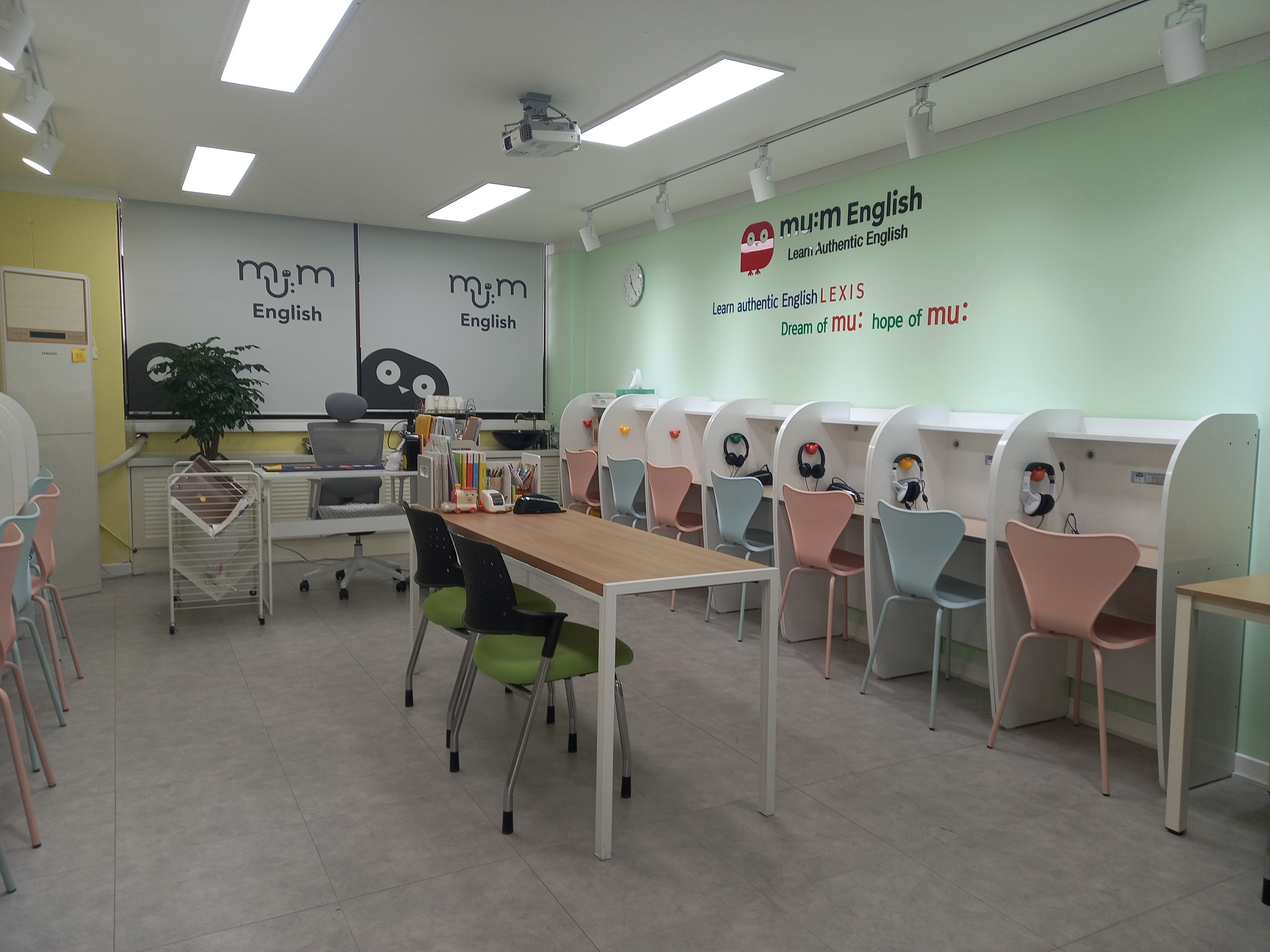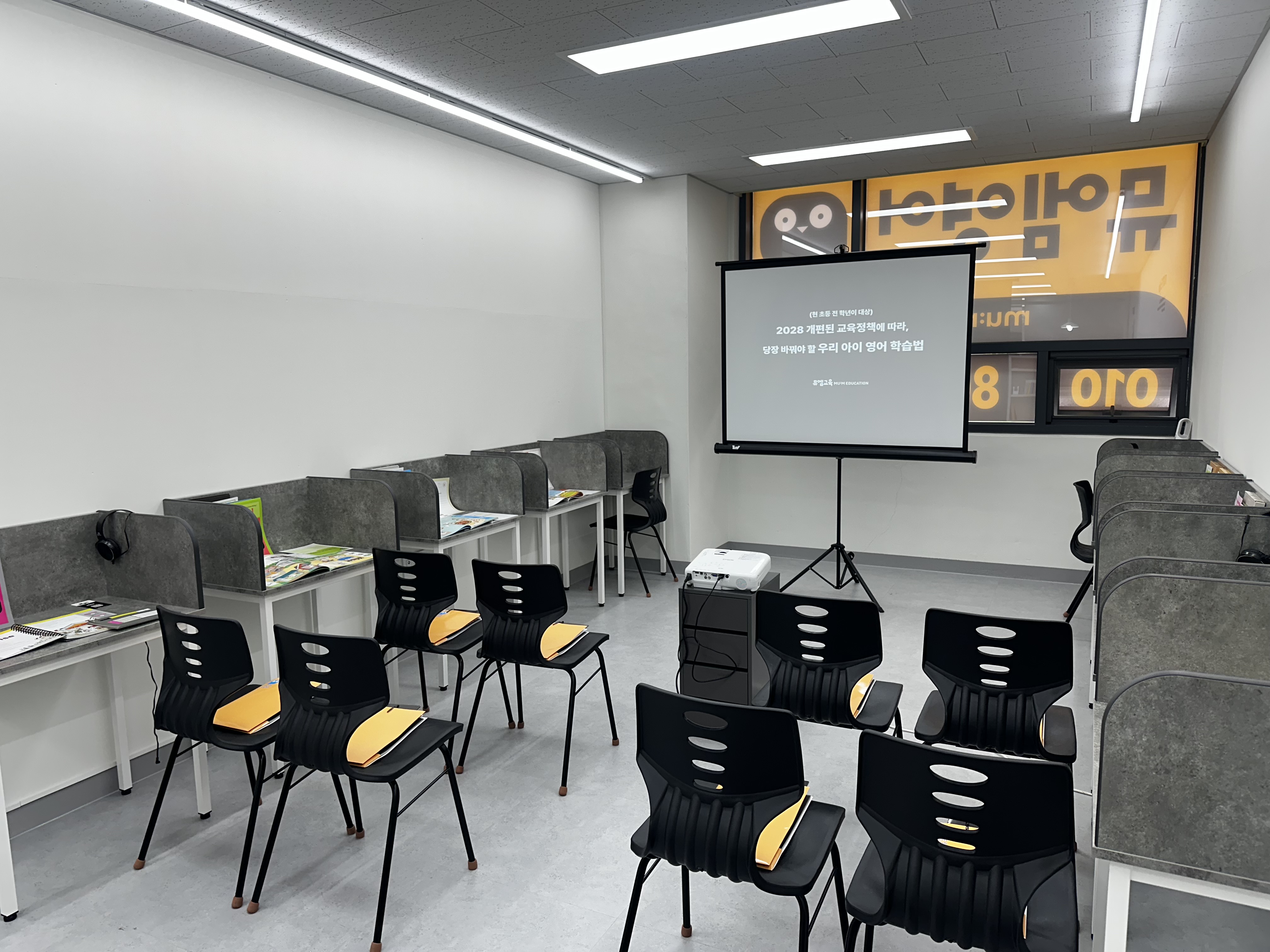 대구 영어 학원 인테리어입니다 대구 서동 뮤엠 영어 학원에 두 강의실입니다 강의실은 아이들이 편안히 공부를 할 수 있게 미니멀 하게 꾸며졌습니다 여기는 대구 뮤엠 본부입니다 요즘 뮤고박스 광고 한참...