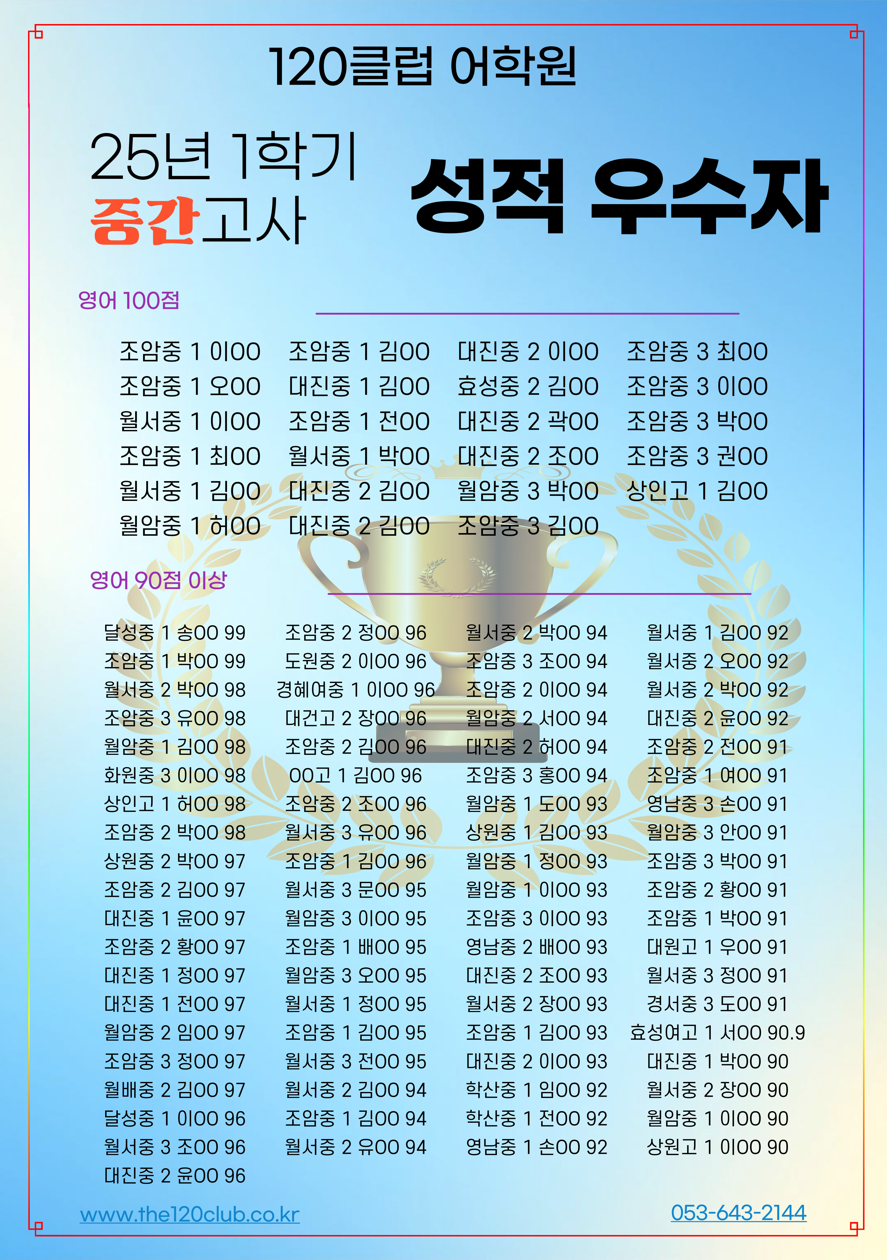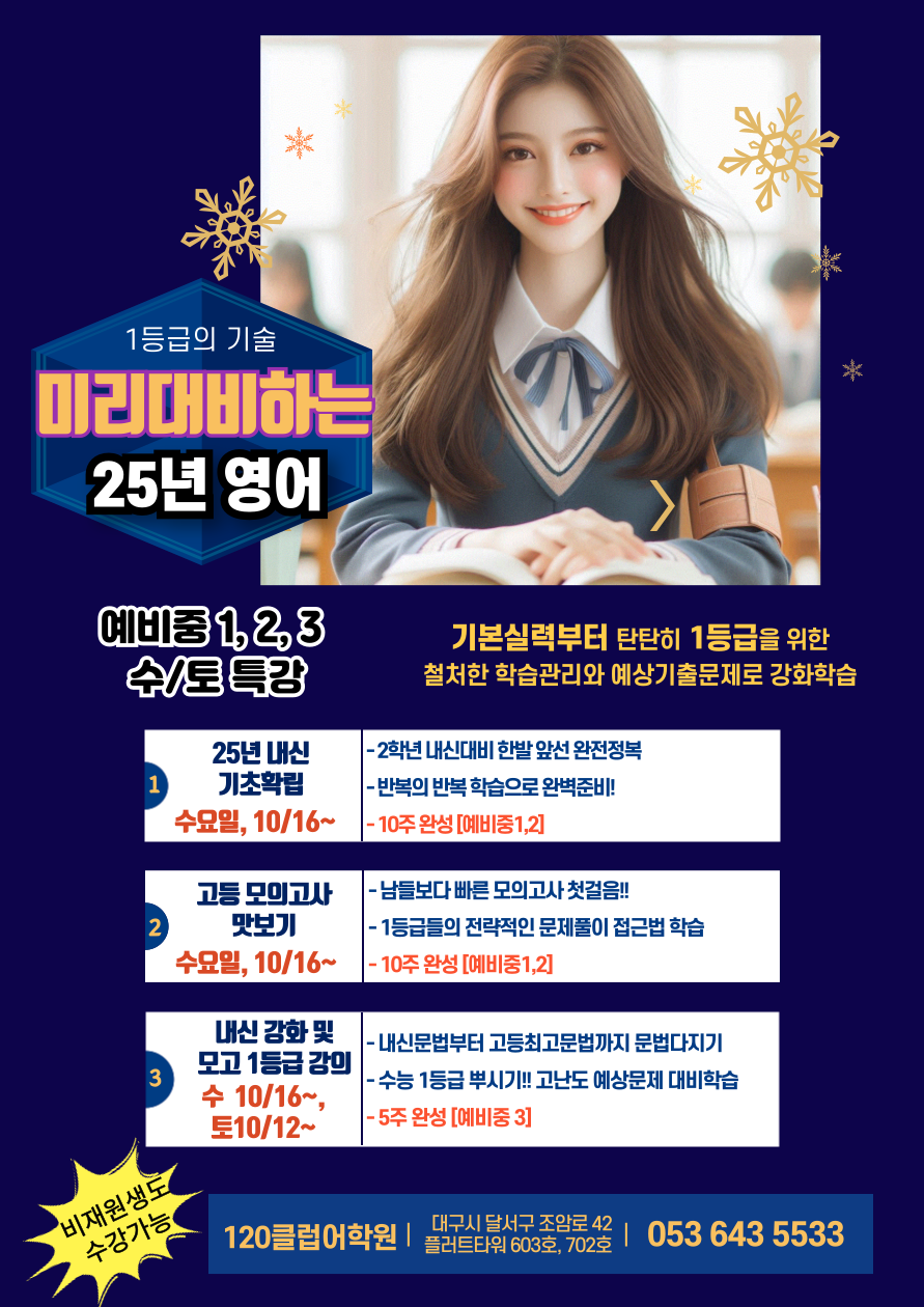 대구유천동영어학원 영어 시작과 끝 120클럽어학원 신월성