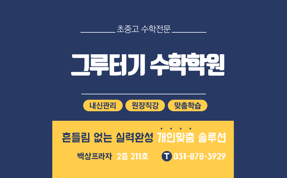 업체 전화번호 0507-1303-9613 편의 주차, 예약 그루터기 수학학원은 중/고등 수학 전문학원입니다. 학생 개별 수업 진도표로 최적화된 맞춤수업, 꼼꼼한 오답관리로 기초부터 탄탄하게 실력향상, 온...