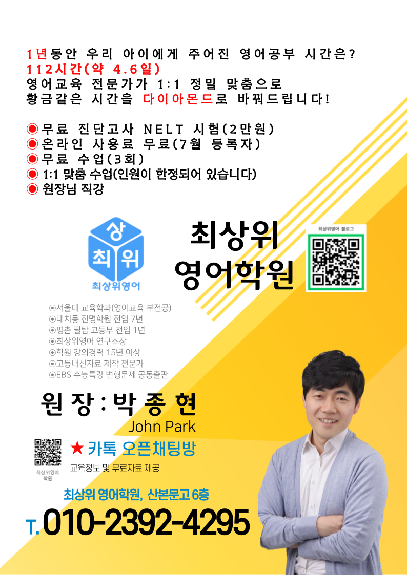최상위영어학원 원장 박종현, 저를 소개합니다.