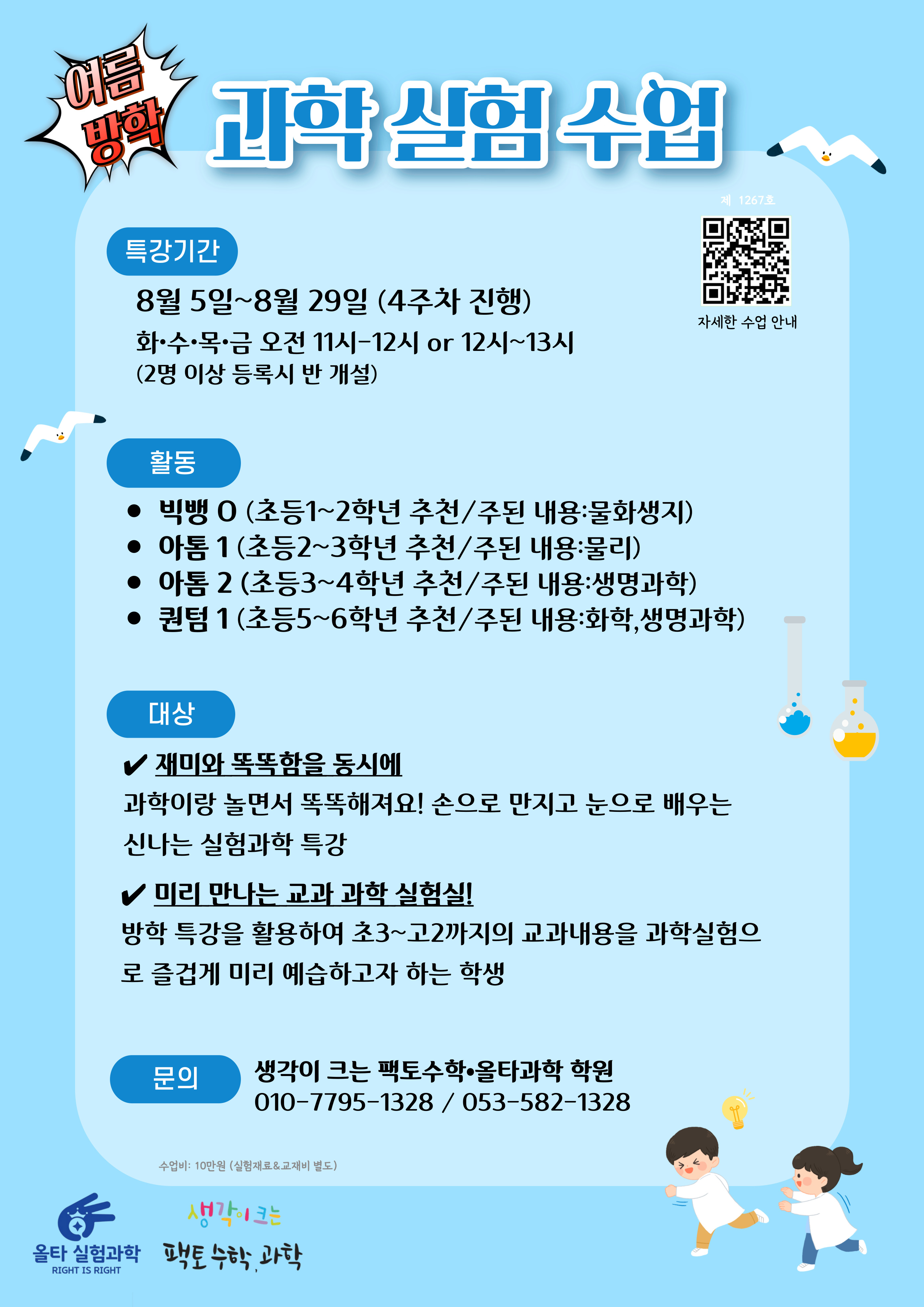 수학 방학 특강 [생각이 크는 팩토 수학 과학 ] 학원 입니다. 짧은 방학기간을 남들과 다르게 시간을 투자하여, 열심히 수업 친구들 분명 다른 결과를 맞이 할 것입니다! [생각이 크는 팩토 수학 과학 학원]은...