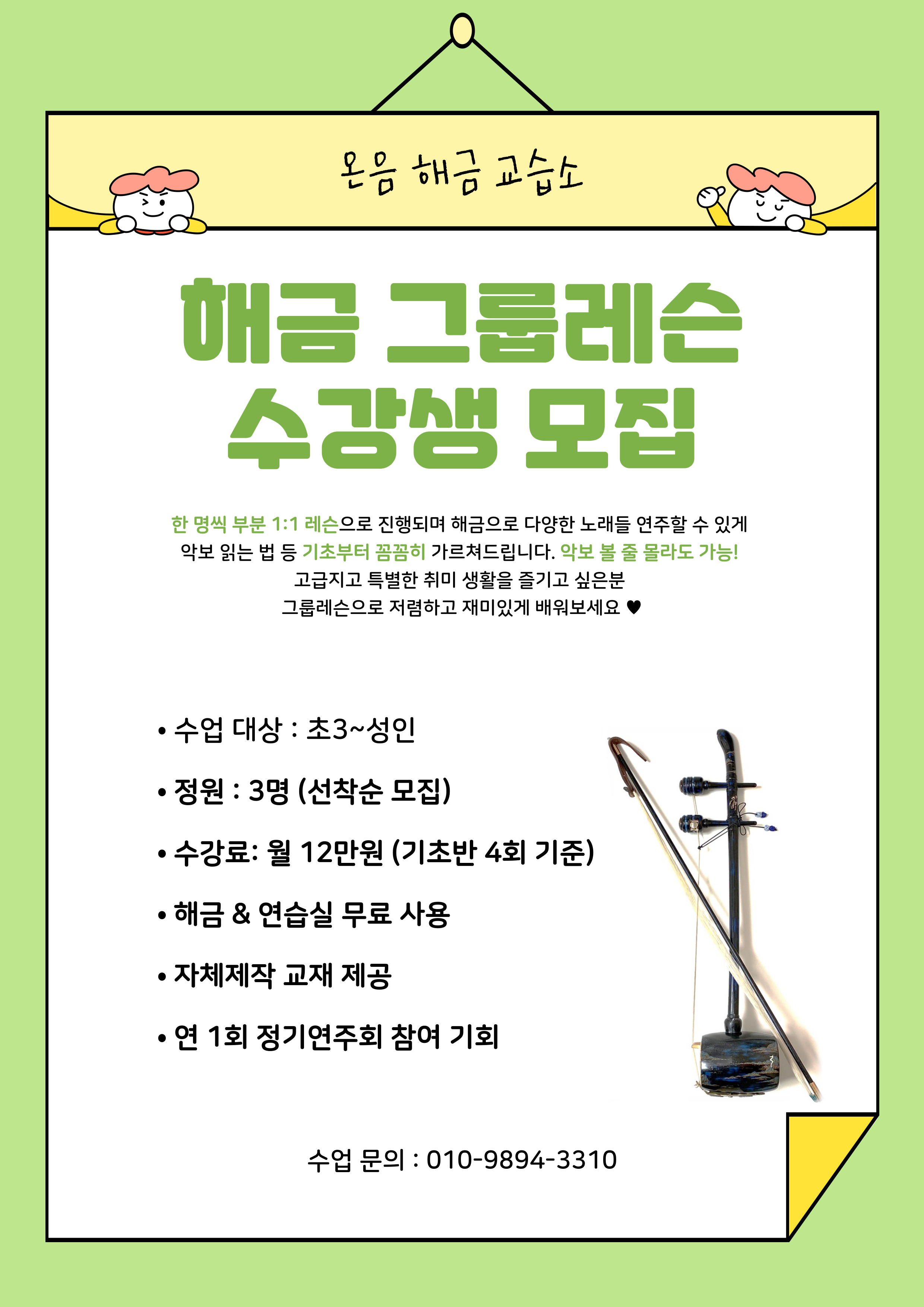 대구 온음 해금 교습소 클래스 안내