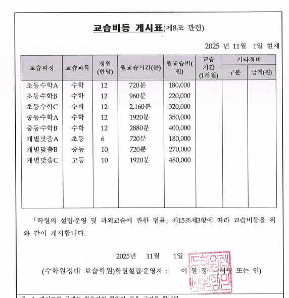 박성일수학보습학원 상세정보