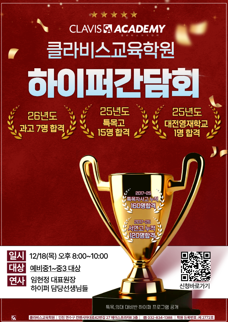 [인천수학·과학학원] 인천송도 No.1입시전문학원 클라비스교...
