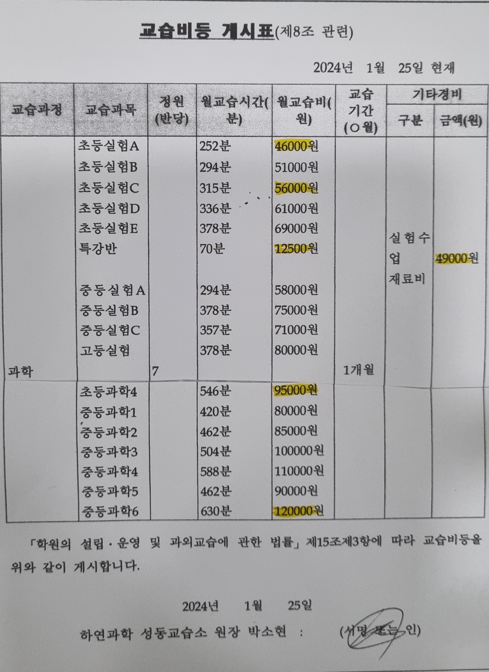 성동하연과학교습소 상세정보