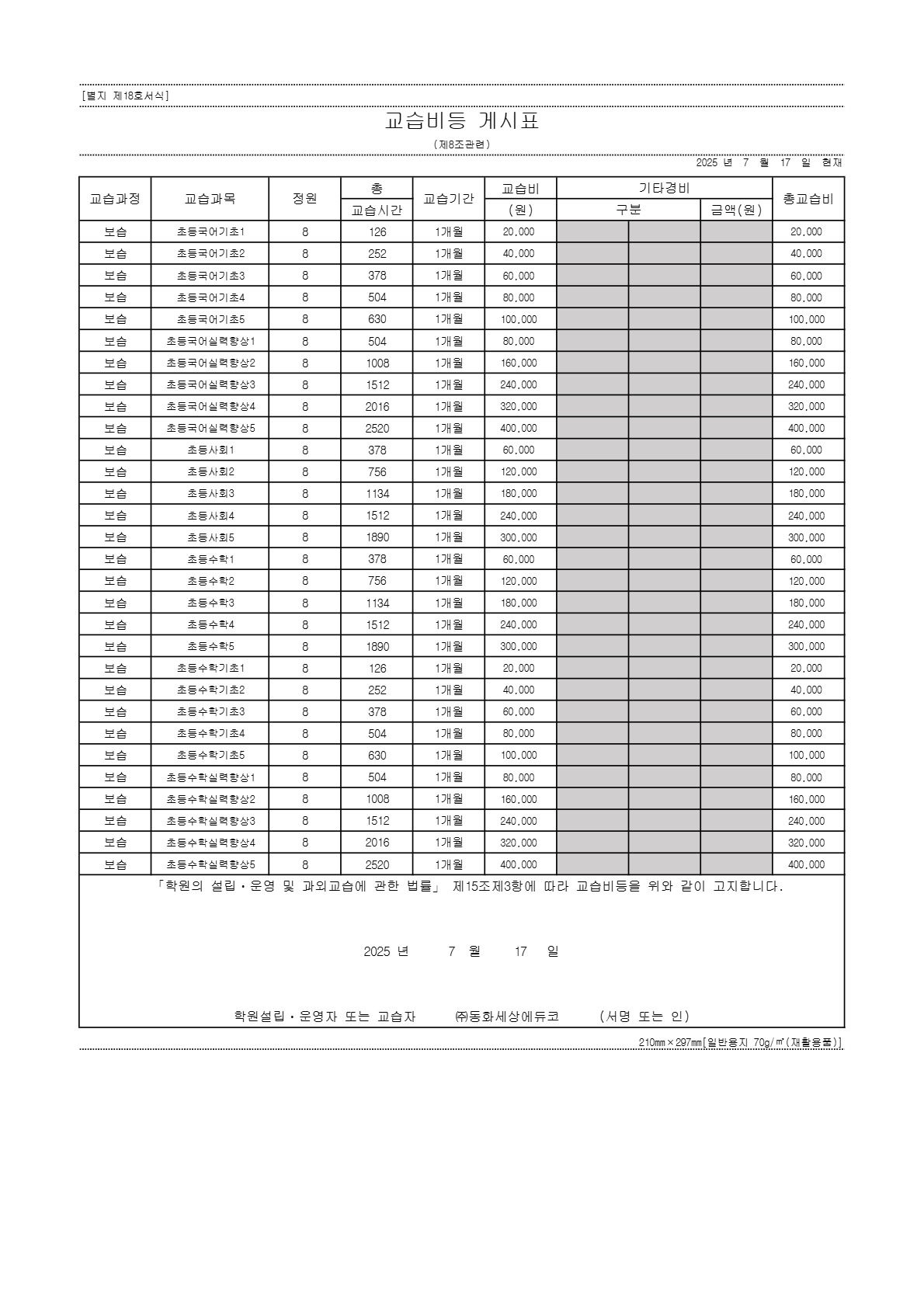 와와학습코칭학원 반월당점 교육비