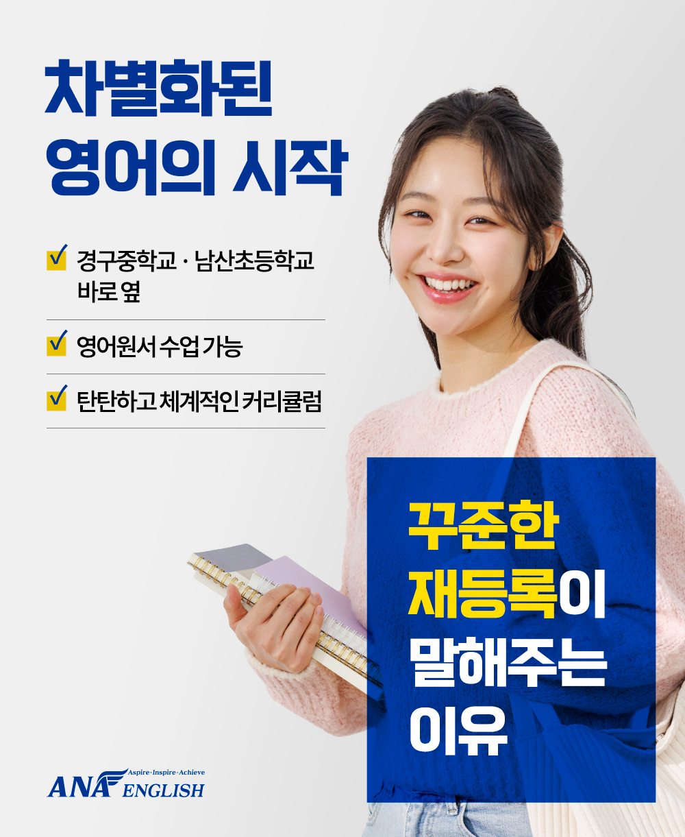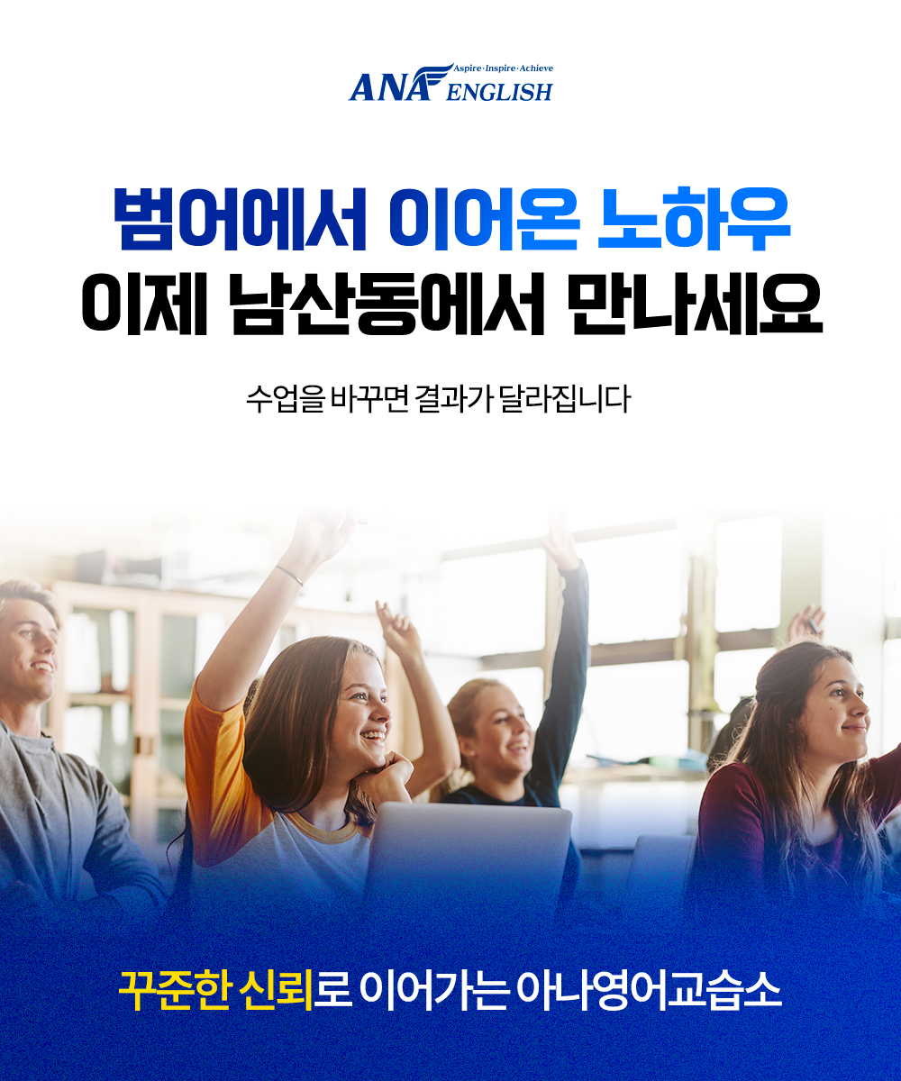 학생들이 마음속에 품은 꿈과 역량을 충분히 펼칠 수 있도록 돕는 것이 ANA영어의 최종 목표입니다. #남산동영어학원 #남산동유일5STAR외항사출신원장 #AnaEnglish #아나영어교습소 #사대부초영어학원...