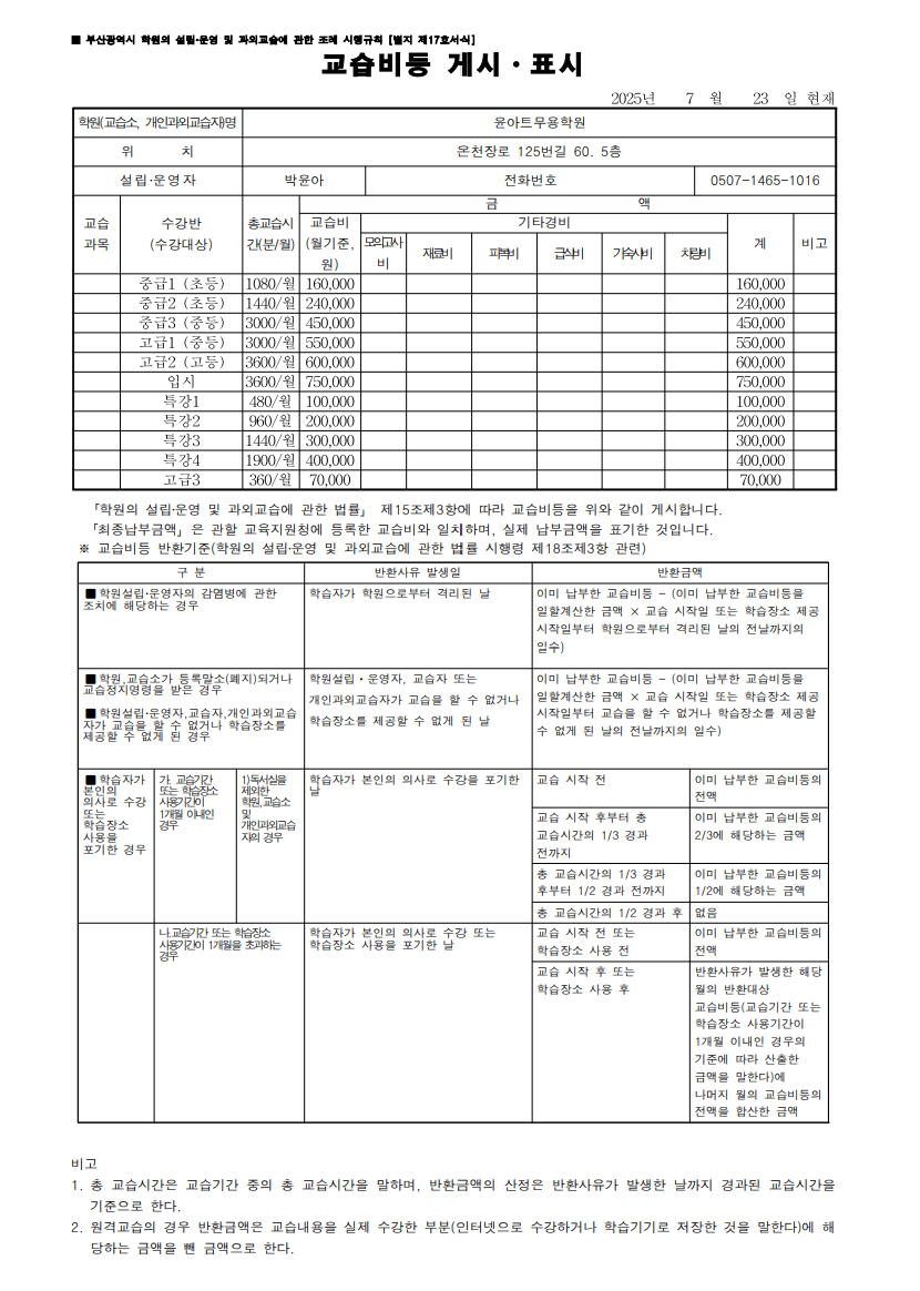 윤아트발레(Yoon art ballet)학원 상세정보